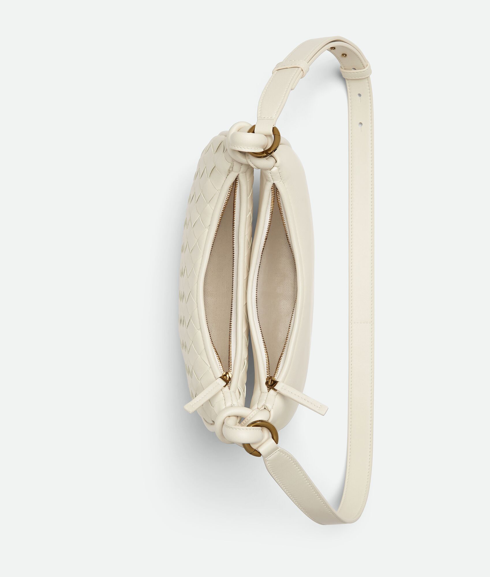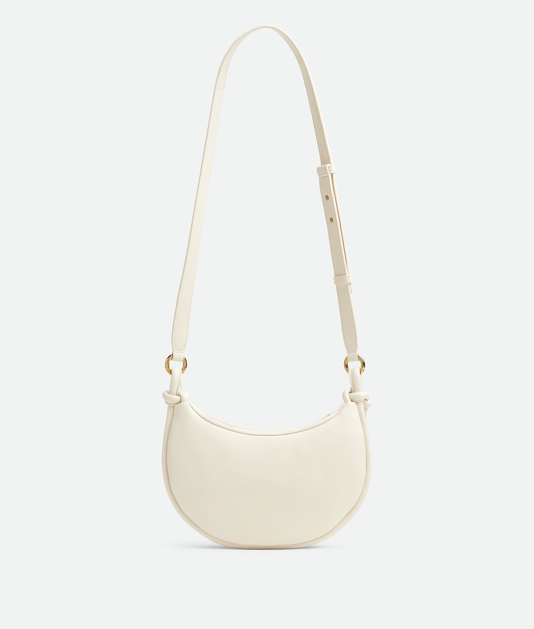 • Small Intrecciato and smooth leather half-moon cross-body bag with adjustable strap