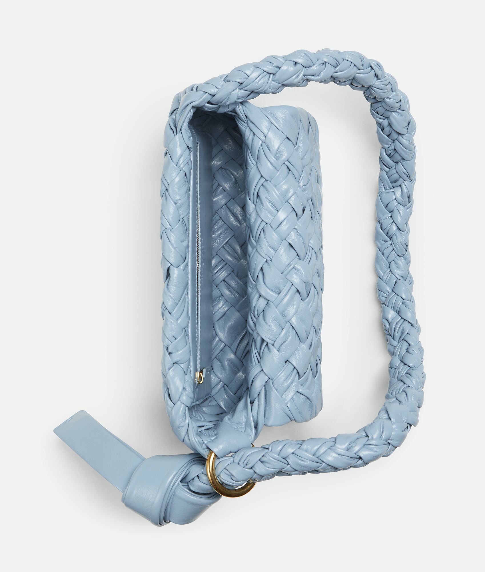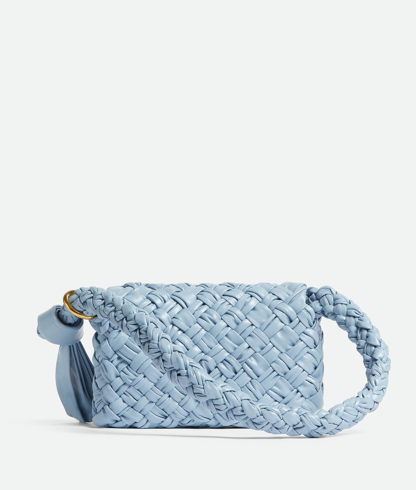 • Sliding shoulder strap with metallic ring and knotted end
