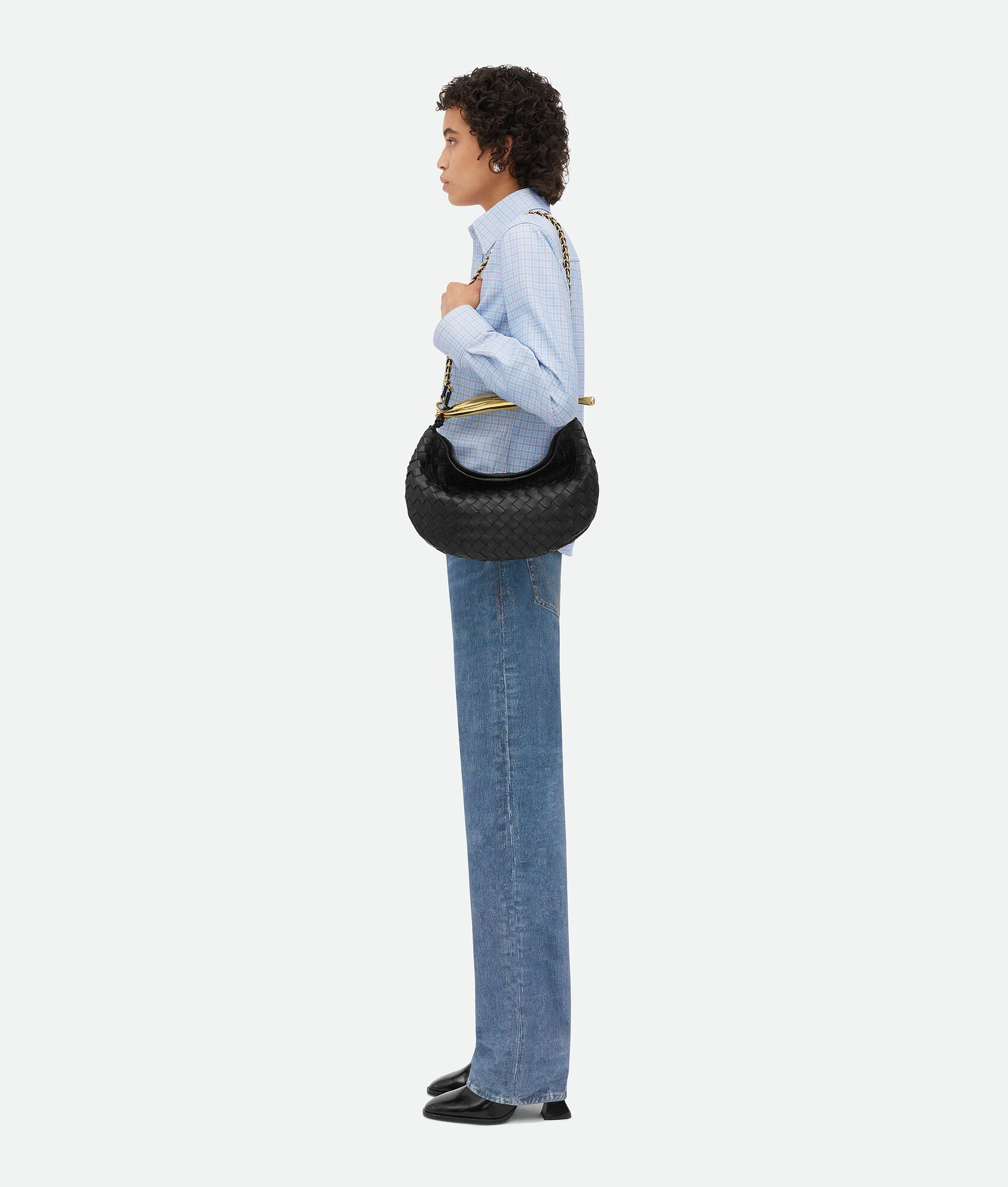 • Small Intrecciato leather bag with metallic top handle enriched by a braided leather shoulder chain