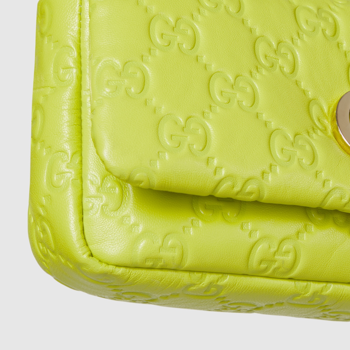 The GG Milano top handle bag debuted at the Fall Winter 2024 fashion show during Milan Fashion Week, paying tribute to the city which inspired the design. It features a new Double G hardware, and the puffy GG embossed leather has a soft and silky touch. The chain strap allows the bag to be worn crossybody or on the shoulder.