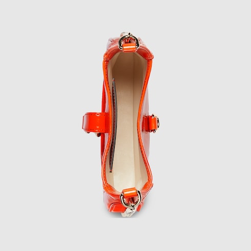 The Jackie Notte is a new handbag designed for Gucci by Creative Director Sabato De Sarno. It embodies the self-confidence of the iconic Jackie line, with a new silhouette and subtle details that make it perfect for nighttime wear. Orange patent leather, a hook closure, and light gold-toned Gucci lettering chain strap give this mini shoulder bag a unique touch.