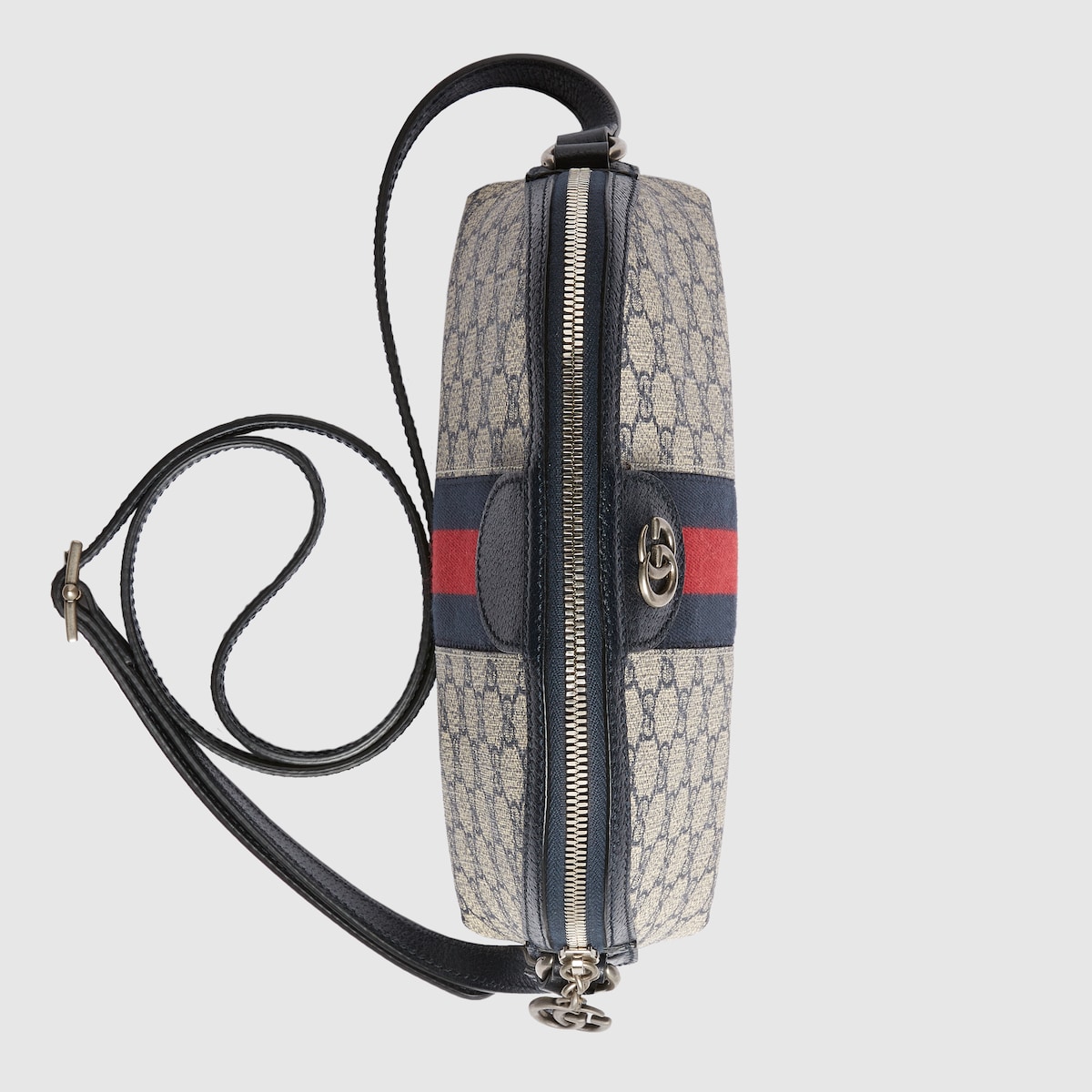 Mirroring the material’s historic origins, GG Supreme is introduced in a timeless mix of blue and beige for Gucci Love Parade. The canvas has come to the front of each collection decade after decade to become a hallmark of the House. Here, the classic palette defines this small Ophidia shoulder bag.