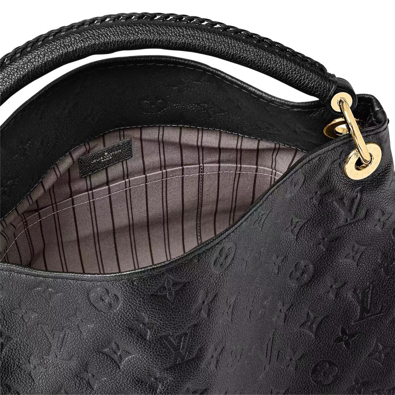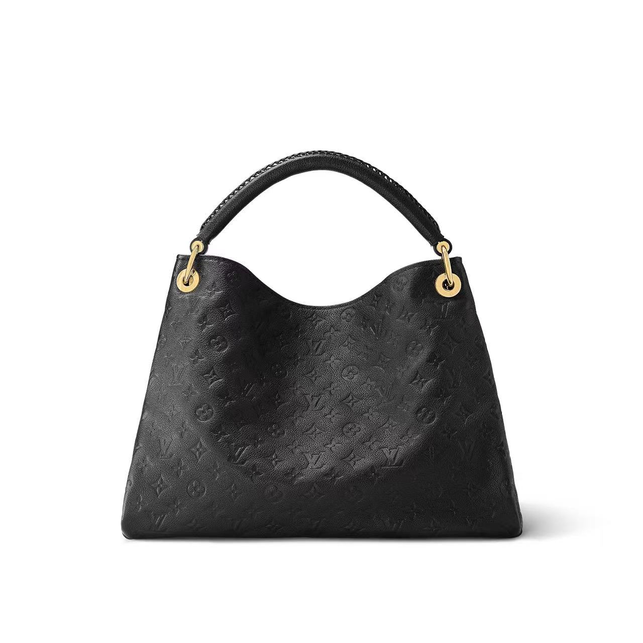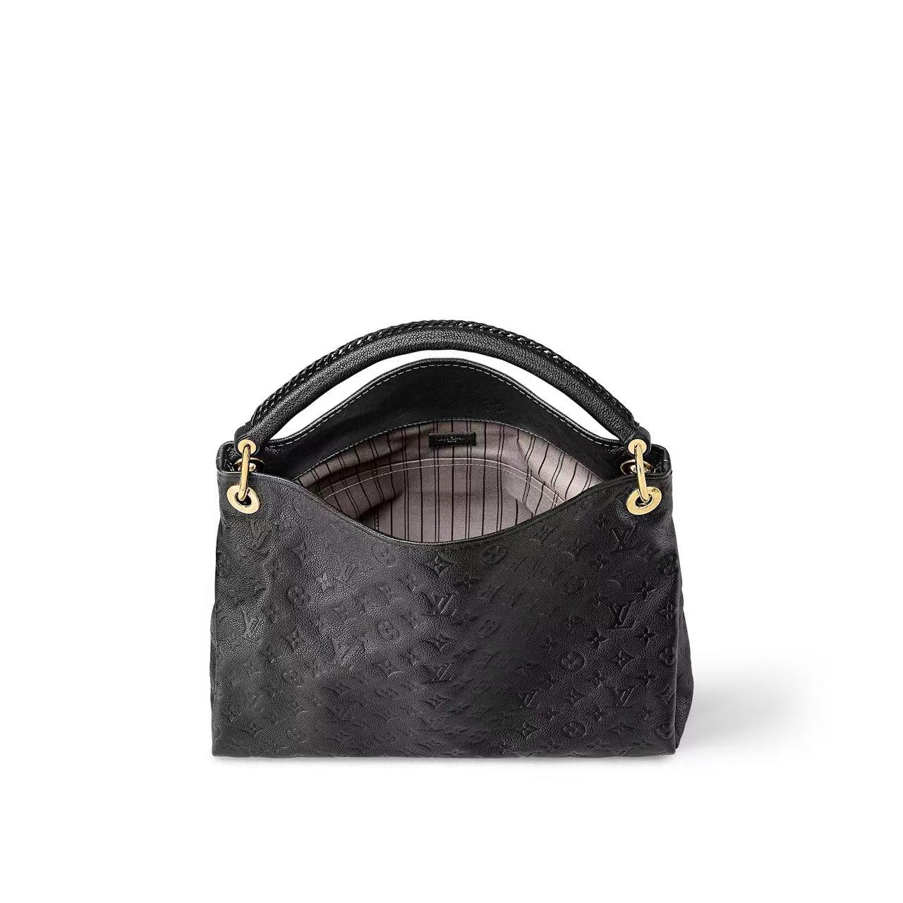 The Artsy MM handbag delights with its refined craftsmanship and functional features. Fashioned from supple Monogram Empreinte embossed leather, this quietly luxurious hobo features a handmade, cross-stitched handle that slips easily over the shoulder. Beautifully detailed with gleaming golden hardware (note the engraved eyelets, D-ring and key holder), it opens to reveal a roomy, well-organized interior.
