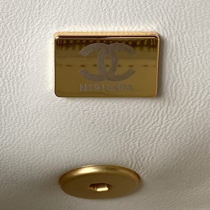 The interior is lined in Rose Clair leather and features a small zip pocket with Chanel pull and slip pocket underneath on the rear wall.