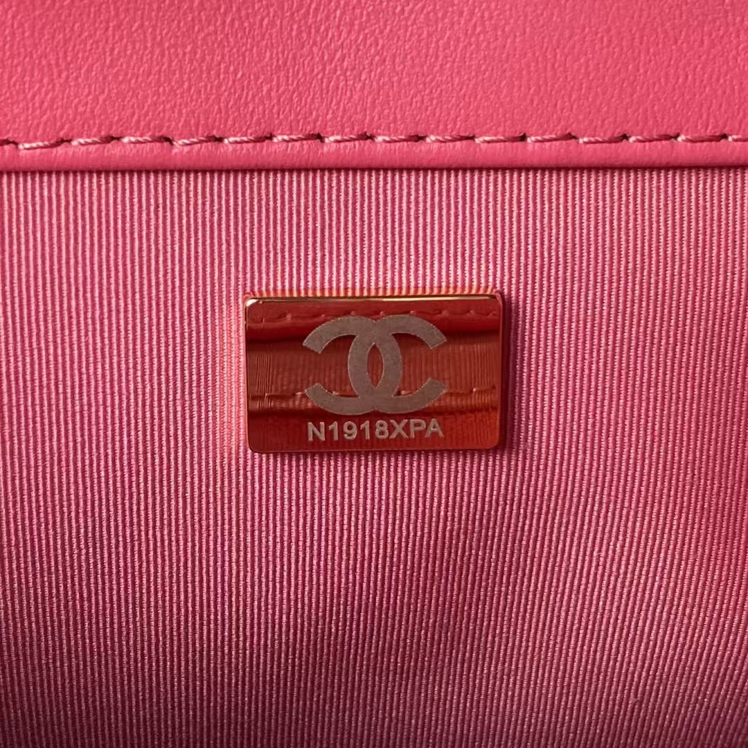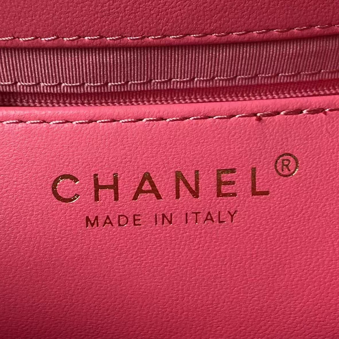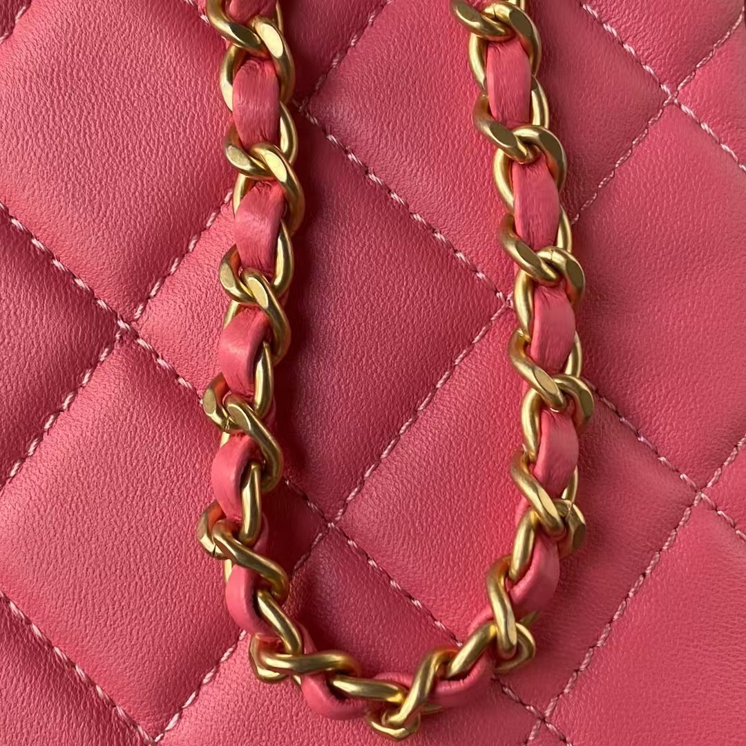 This CC Shoulder Bag Fuchsia Lambskin leather with Antique Gold Hardware, features tonal stitching, round shape structure, large antique gold CC tab snap closurethat folds over front top of bag.