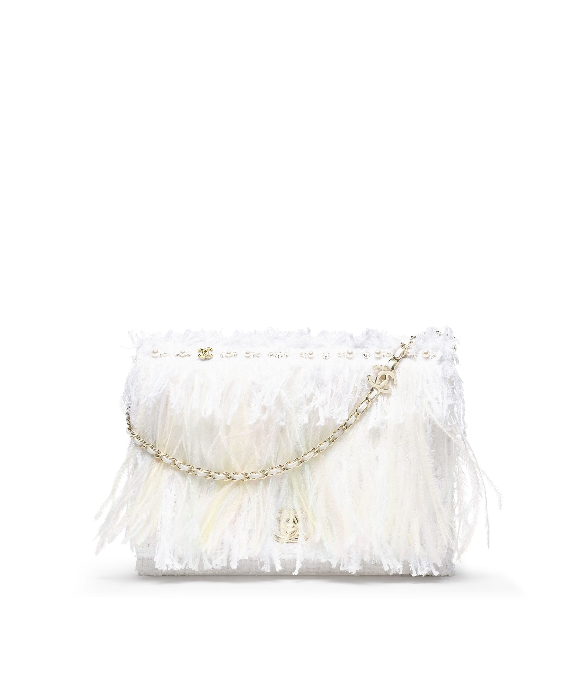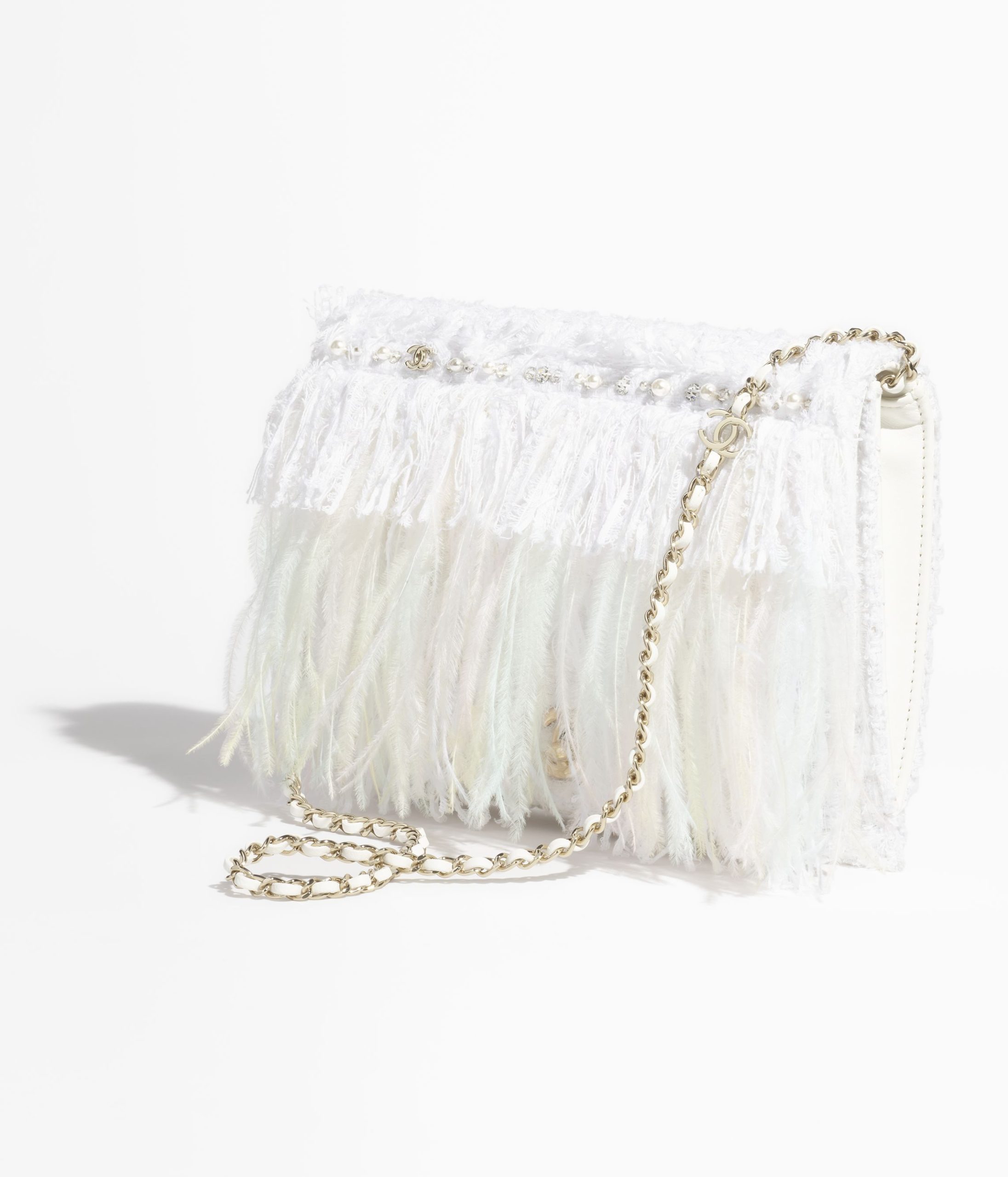 MaterialEmbroidered Tweed, Feathers, Imitation Pearls & Gold-Tone Metal