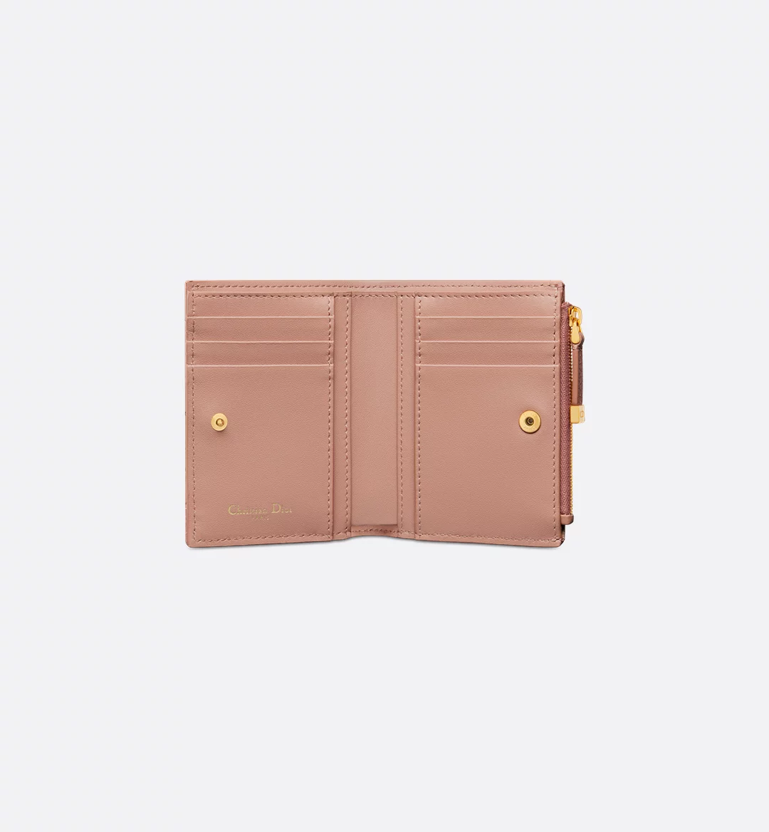 The Dior Caro Dahlia wallet displays the iconic Cannage topstitching in a contemporary variation. Crafted in Rose des Vents supple calfskin, it has a CD signature on the front. A chic and spacious companion, the wallet can be coordinated with other bags from the same line.