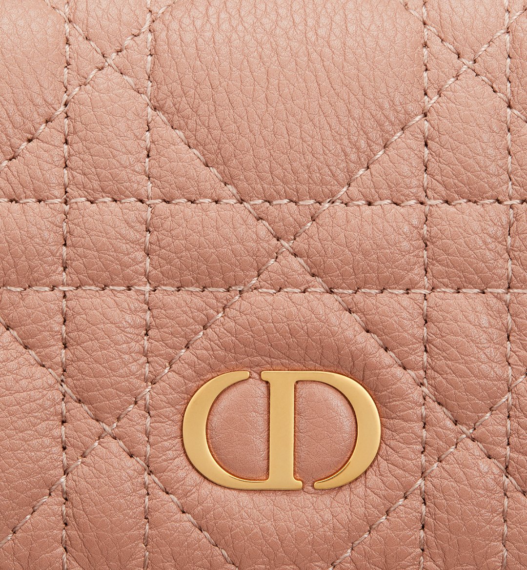 The Dior Caro Glycine wallet is distinguished by its compact and practical design. Crafted in Rose des Vents supple calfskin with Cannage stitching, it is enhanced by the CD signature on the front. Accommodating all the essentials, the refined accessory slips into any pocket or bag and can be paired with other Dior Caro creations.