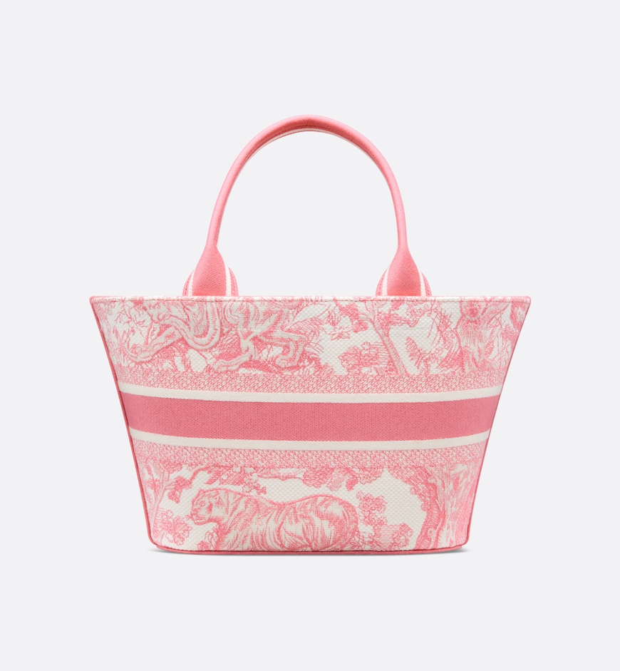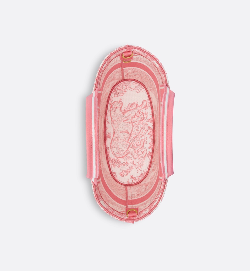 • Part of the Dioriviera capsule, the hat basket bag stands out with its elegant silhouette combining functionality and refinement. Fully embroidered with the candy pink Toile de Jouy motif, the style is enhanced by the Christian Dior Paris signature on the front. Equipped with a tonal detachable zip pouch, the spacious bag is completed by an adjustable and removable embroidered strap, allowing it to be carried by hand, worn over the shoulder or crossbody.