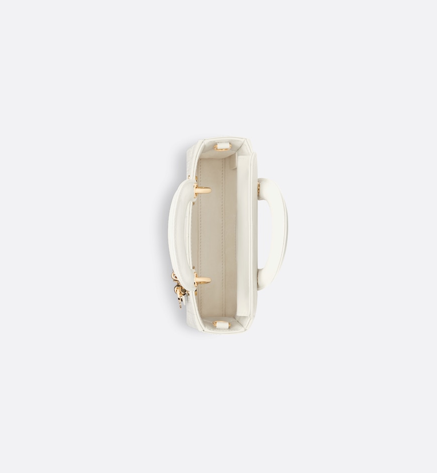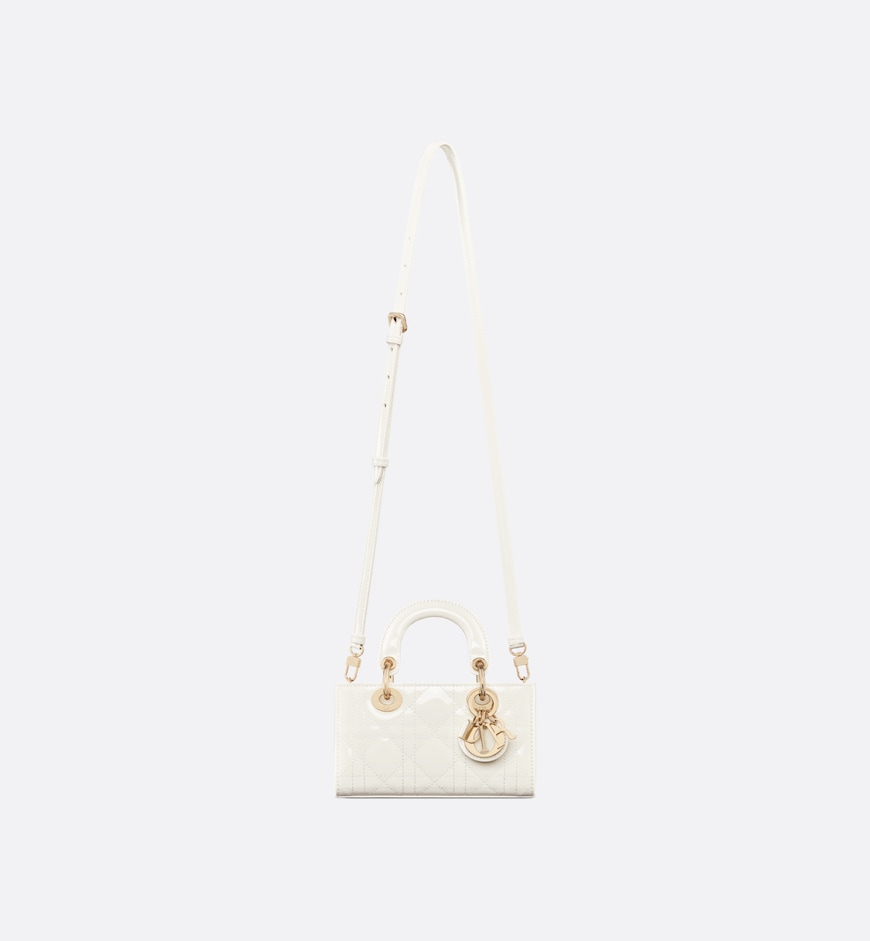 • The Lady D-Joy micro bag captures the House’s vision of elegance and beauty by showcasing the iconic streamlined aesthetic of the Lady Dior line. Sleek and refined, the timeless creation is crafted in latte patent calfskin with Cannage topstitching and enhanced by a pale gold-finish metal D.I.O.R. charm. Featuring one removable chain strap and another adjustable and removable leather strap, the Lady D-Joy bag can be carried by hand, worn over the shoulder or crossbody as an ideal day or evening companion.