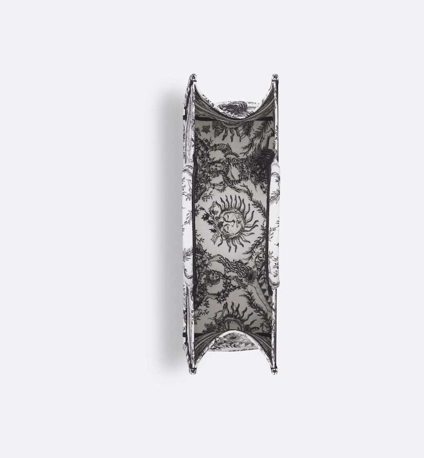 • Introduced by Maria Grazia Chiuri, Creative Director of Christian Dior, the Dior Book Tote has become a staple of the Dior aesthetic. Designed to hold all the daily essentials, the style is fully embroidered with the season’s signature Toile de Jouy Soleil motif in white and black, offering a new take on the iconic House motif with suns and crescent moons layered into a floral design representing the four seasons. Exemplifying House savoir-faire, the large tote is adorned with the Christian Dior Paris signature on the front, and may be carried by hand or worn over the shoulder.