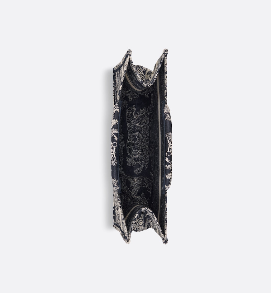 • Introduced by Maria Grazia Chiuri, Creative Director of Christian Dior, the Dior Book Tote has become a staple of the Dior aesthetic. Designed to hold all the daily essentials, the style is fully embroidered with a blue and ecru Toile de Jouy Reverse motif, a variation of the House’s hallmark pattern with a play on reversed colors. Adorned with the Christian Dior Paris signature on the front, the large tote exemplifies the House’s signature savoir-faire and may be carried by hand or worn over the shoulder.
