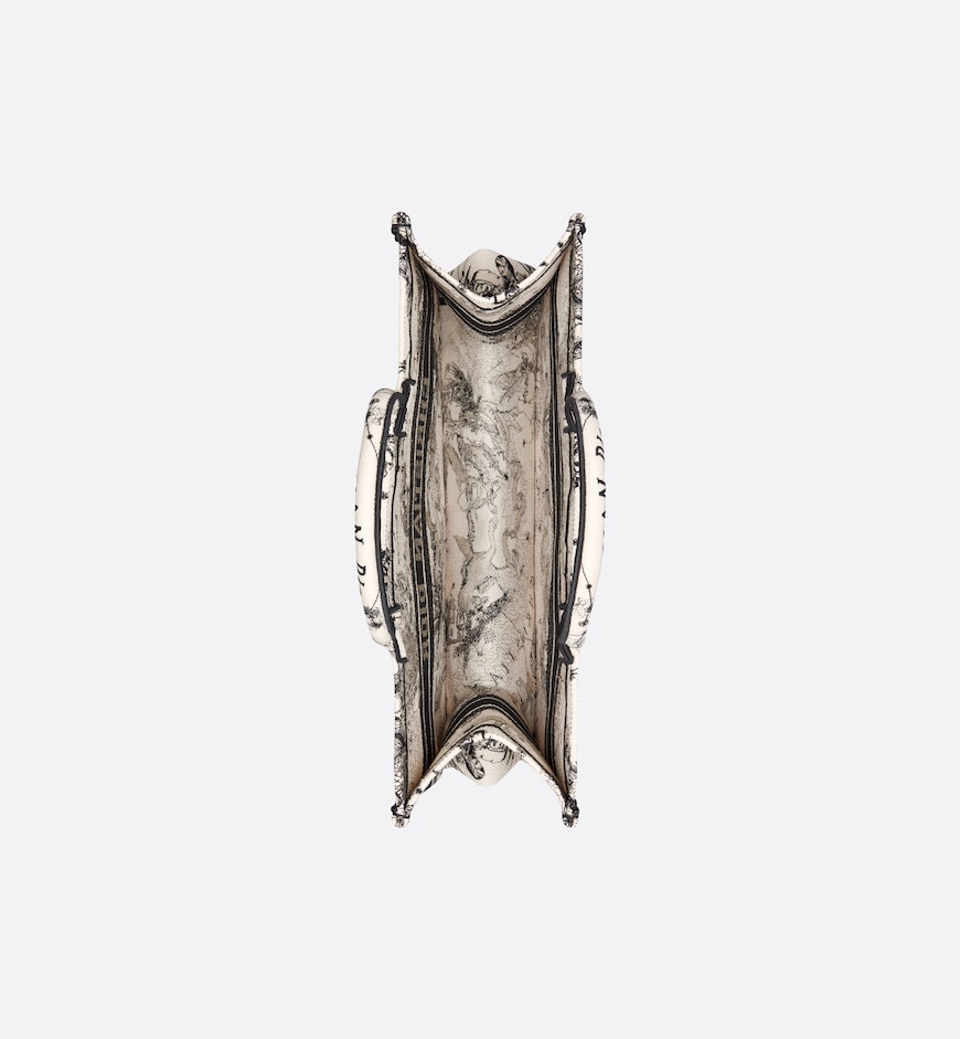 - Introduced by Maria Grazia Chiuri, Creative Director of Christian Dior, the Dior Book Tote has become a staple of the Dior aesthetic. Designed to hold all the daily essentials, the latte and black style is fully embroidered with the Toile de Jouy Zodiac motif, a variation of the iconic pattern that incorporates Mr. Dior’s passion for astrology. Adorned with the Christian Dior Paris signature on the front, the large tote exemplifies the House’s signature savoir-faire and may be carried by hand or worn over the shoulder.