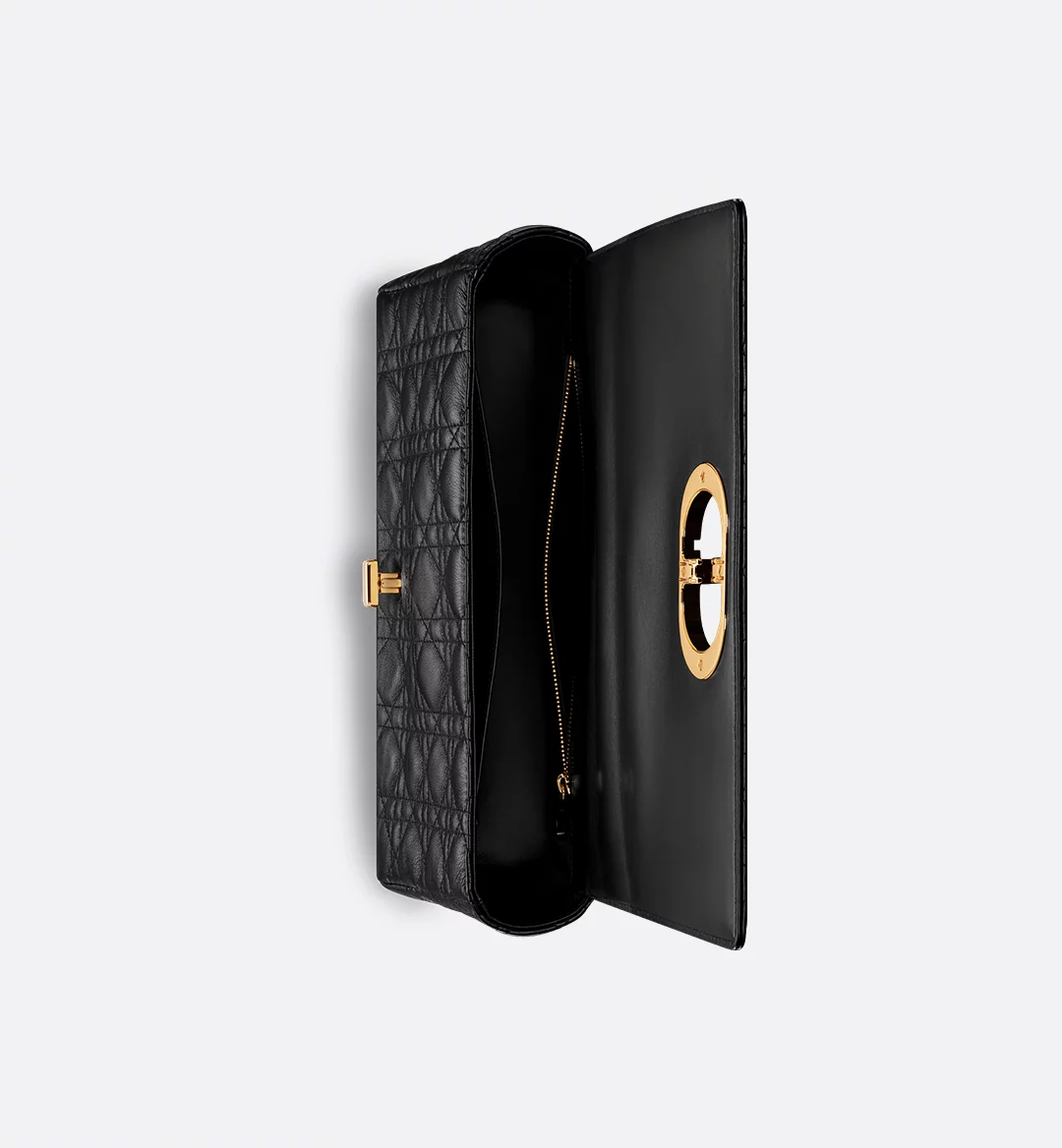 - The Dior Caro bag combines modernity with timeless elegance. The silhouette is crafted in black supple calfskin with Cannage stitching. The bag features a flap adorned with an antique gold-finish metal CD twist clasp, inspired by the seal of a Christian Dior perfume bottle. The detachable chain strap with CD signature links allows the large bag to be carried by hand, worn over the shoulder or crossbody, and may be replaced by one of the House’s wide embroidered straps for day or evening attire.