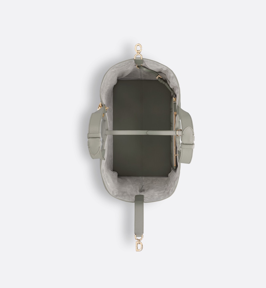 • The Dior Toujours bag is distinguished by a casual and practical design. Crafted in stone gray calfskin with Macrocannage topstitching, it showcases a spacious interior compartment with a matching pouch to organize the essentials. Its thin leather strap closure keeps items secure while the D of the CD Lock clasp twists to adjust the sides and enhance the bag’s silhouette. The leather handles can be adjusted using the small notches in order to be able to carry the large bag by hand or wear it over the shoulder.