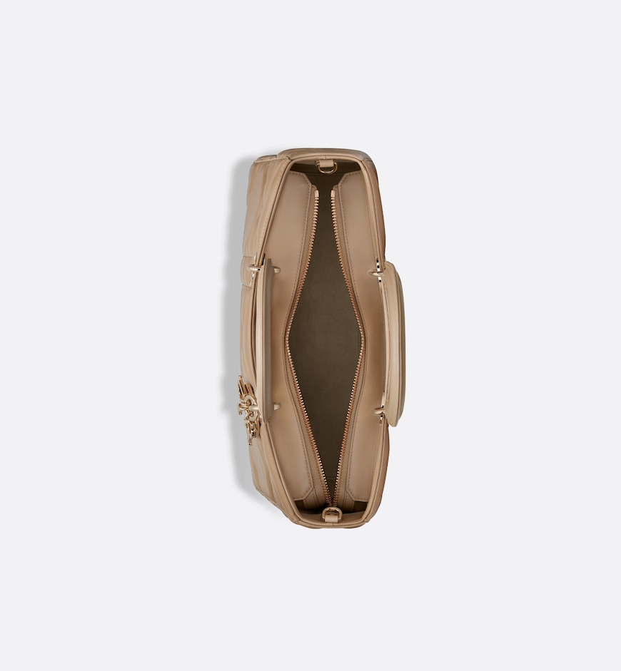 - The Lady D-Sire bag is inspired by the elegance of the iconic Lady Dior, revisited with the urban aesthetic of a supple and unstructured form. The biscuit calfskin showcases Maxicannage topstitching in a nod to the House hallmark, while pale gold-finish metal D.I.O.R. charms accent the silhouette. Featuring a thin, removable leather shoulder strap, the unique large bag can be carried by hand or worn over the shoulder.