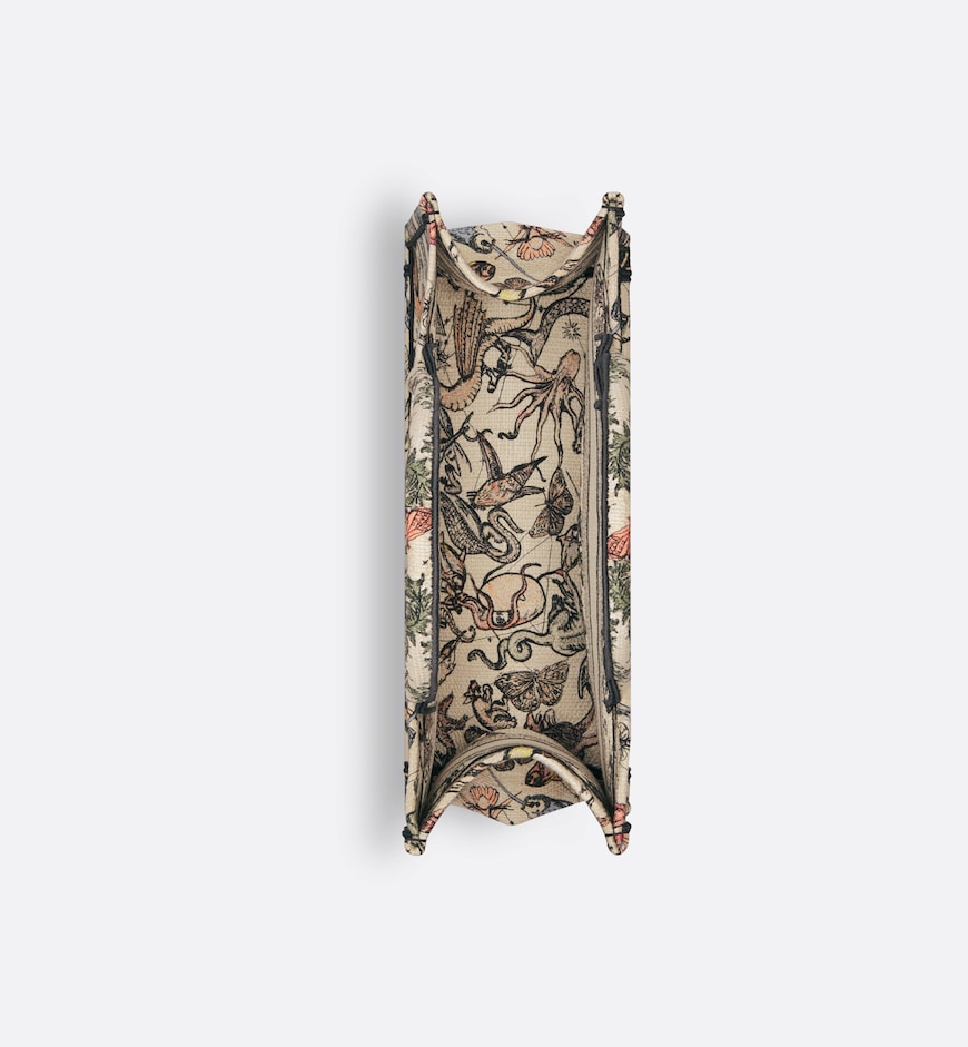 Introduced by Maria Grazia Chiuri, Creative Director of Christian Dior, the Dior Book Tote has become a staple of the Dior aesthetic. Designed to hold all the daily essentials, it is fully embroidered with the white multicolor Animaux Fantastiques motif, showcasing griffins, dragons, unicorns and a myriad of mythical creatures in a fantastical universe inspired by magical animals of the Middle Ages. Adorned with the Christian Dior Paris signature on the front, the medium tote exemplifies the House’s signature savoir-faire and may be carried by hand or worn over the shoulder.