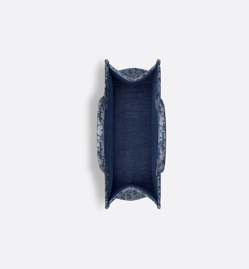 • Introduced by Maria Grazia Chiuri, Creative Director of Christian Dior, the Dior Book Tote has become a staple of the Dior aesthetic. Designed to hold all the daily essentials, it is constructed in blue Denim Dior Oblique jacquard, offering a new take on the iconic House motif with the modern appeal of an irregular stonewashed effect. Adorned with a contrasting Christian Dior Paris signature on the front, the medium tote exemplifies the House’s savoir-faire and may be carried by hand.