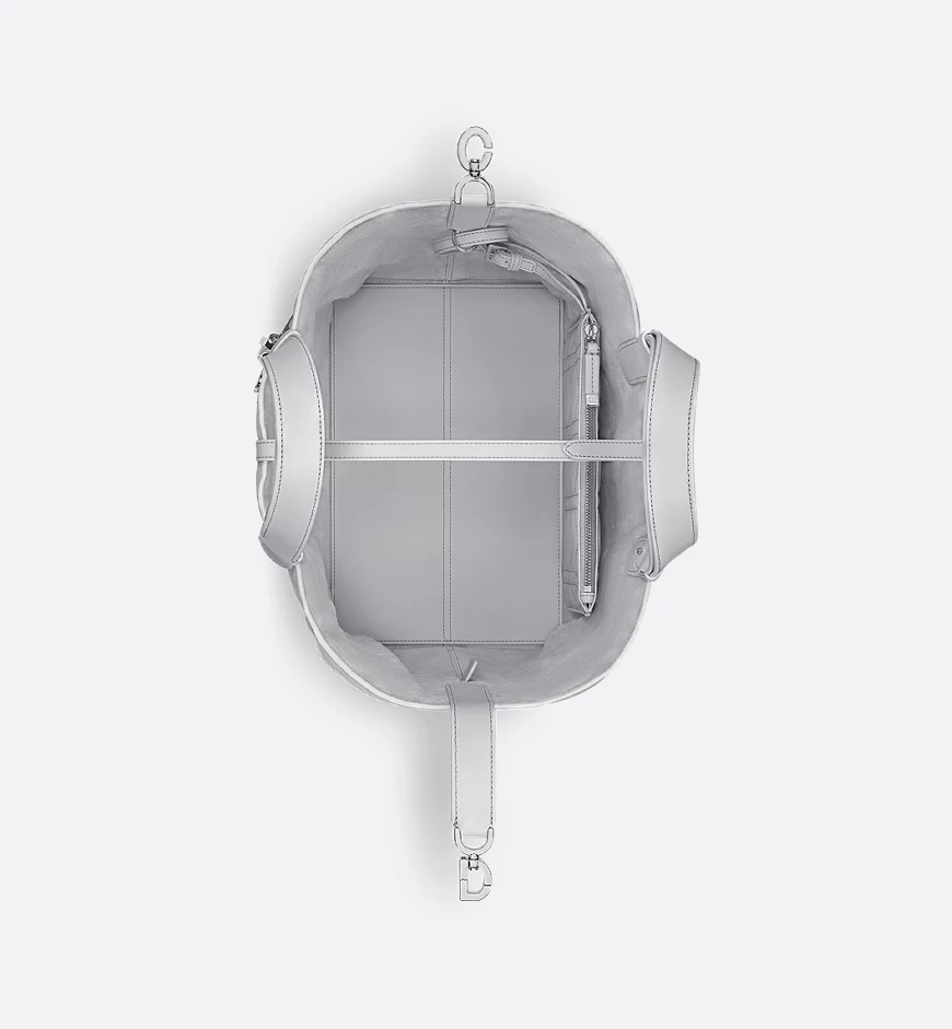 • The Dior Toujours bag is distinguished by a casual and practical design. Crafted in gray calfskin with Macrocannage topstitching, it showcases a spacious interior compartment with a matching pouch to organize the essentials. Its thin leather strap closure keeps items secure while the D of the CD Lock clasp twists to adjust the sides and enhance the bag’s silhouette. The leather handles can be adjusted using the small notches so the medium bag can be carried by hand or worn over the shoulder.