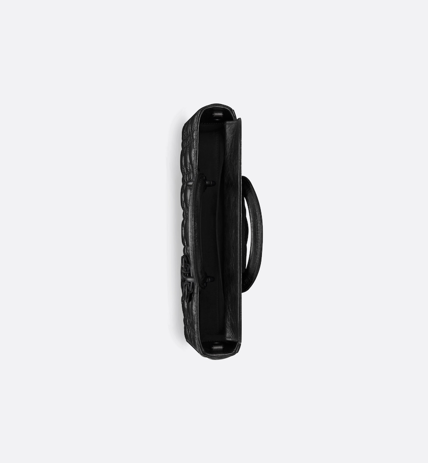 - The Lady D-Joy bag captures the House’s vision of elegance and beauty by showcasing the iconic streamlined aesthetic of the Lady Dior line. Constructed in black crinkled calfskin with Cannage stitching, its quilted texture is immediately recognizable. Ultra-matte metal D.I.O.R. charms add a modern touch. Featuring one removable chain strap and another adjustable and removable leather strap, the medium Lady D-Joy bag can be carried by hand, worn over the shoulder or crossbody as a daily companion.