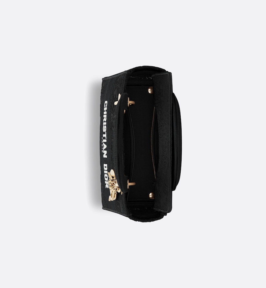 - The Lady D-Lite bag captures the House’s vision of classic elegance and modernity. Constructed in black Macramé embroidery, it offers a new take on the iconic House motif with this season’s signature Toile de Jouy Soleil pattern, layering suns and crescent moons into a floral design representing the four seasons. The pale gold-finish metal D.I.O.R. charms embellish and illuminate the silhouette. Featuring a wide, removable embroidered shoulder strap, the medium Lady D-Lite bag can be carried by hand or worn crossbody.