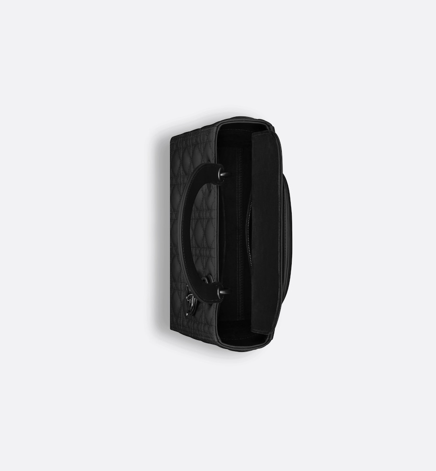 - The Lady Dior bag epitomizes the House’s vision of elegance and beauty. Sleek and refined, the timeless yet relevant style is crafted in black ultramatte calfskin with Cannage stitching, creating the instantly recognizable quilted texture. The tonal metal D.I.O.R. charms complete and illuminate the silhouette. Featuring a thin, removable leather strap, the medium Lady Dior bag can be carried by hand, worn over the