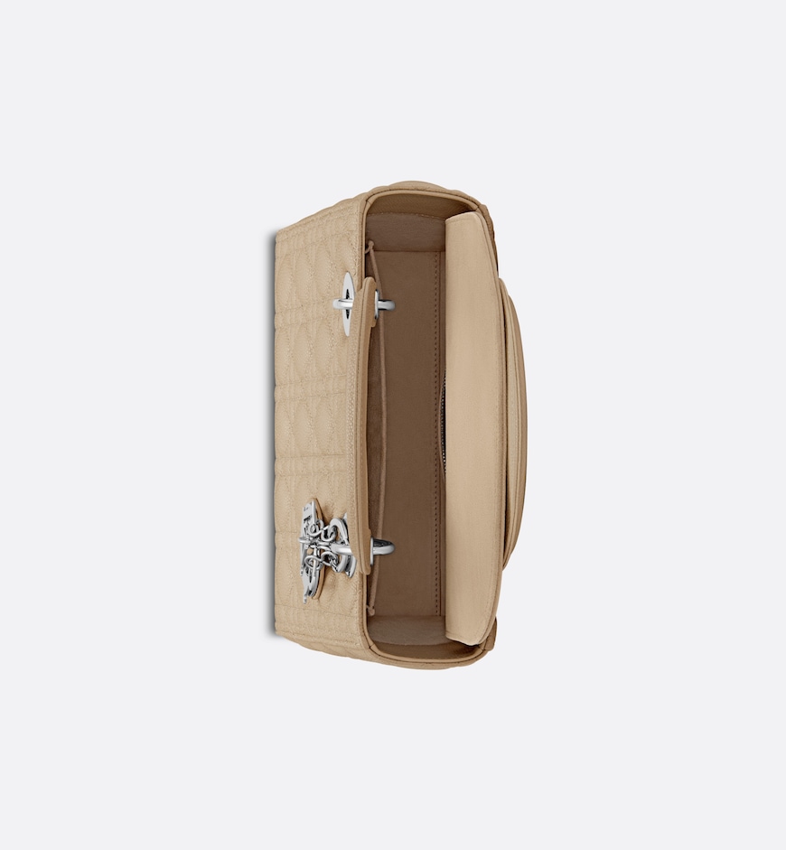 - The Lady Dior bag embodies the House’s vision of elegance and beauty. Sleek and refined, the style is timeless. Crafted in sand-colored grained calfskin with Cannage stitching, the bag presents the instantly recognizable quilted texture, while silver-finish metal D.I.O.R. charms offer a modern touch. Featuring a thin, removable leather shoulder strap, the medium Lady Dior bag can be carried by hand or worn crossbody.