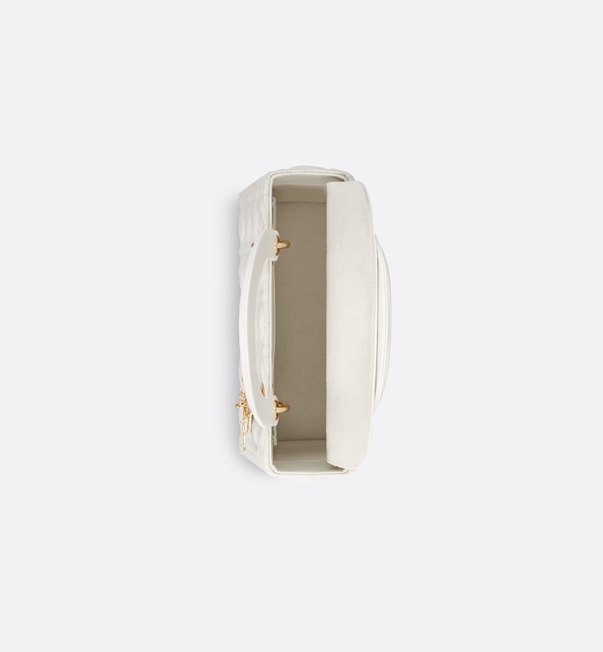 - The Lady Dior bag epitomizes the House’s vision of elegance and beauty. Sleek and refined, the timeless style is crafted in latte lambskin with Cannage stitching, creating the instantly recognizable quilted texture. Pale gold-finish metal D.I.O.R. charms offer elegant appeal. Featuring a thin, removable leather shoulder strap, the medium Lady Dior bag may be carried by hand or worn crossbody.