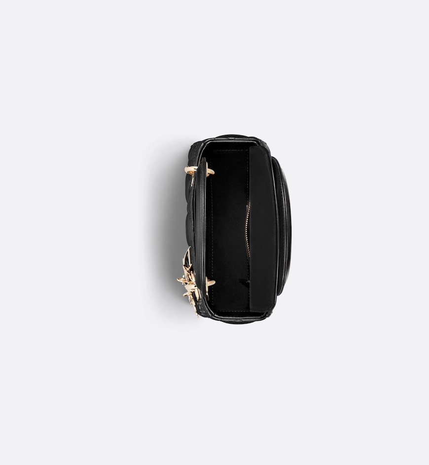 - The Lady Dior bag epitomizes the House’s vision of elegance and beauty. Refined and sleek, the timeless creation is crafted in black lambskin and covered with Cannage stitching, creating an instantly recognizable quilted texture. The pale gold-finish metal D.I.O.R. charms embellish and illuminate its silhouette. Featuring a removable chain shoulder strap, the miniature Lady Dior bag can be carried by hand or