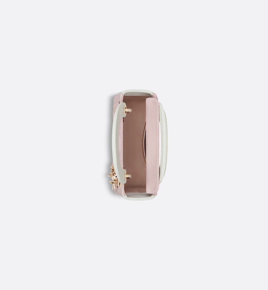 • The Lady Dior bag embodies Dior’s vision of elegance and beauty. Sleek and refined, the timeless and modern style is crafted in two-tone latte and powder pink lambskin with Cannage stitching, creating the instantly recognizable quilted texture. Pale gold-finish metal D.I.O.R. charms further embellish and illuminate its silhouette. Featuring a removable chain shoulder strap, the miniature Lady Dior bag can be carried by hand, worn over the shoulder or crossbody as an ideal evening wear companion.