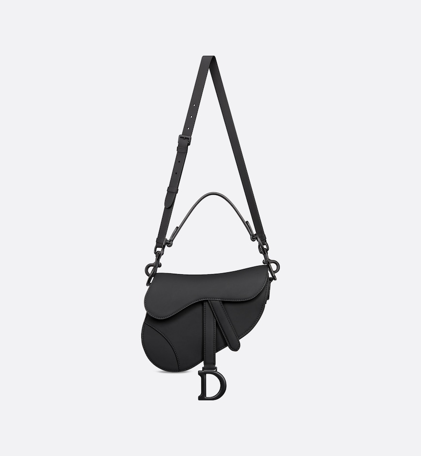- Maria Grazia Chiuri brings a fresh update to the iconic Saddle bag. Crafted in black ultramatte calfskin, the legendary design features a Saddle flap with a D stirrup strap and magnetic pull, as well as a tonal-finish metal CD signature on either side of the handle. Equipped with a thin, adjustable and removable strap, the miniature Saddle bag may be carried by hand, worn over the shoulder or crossbody.