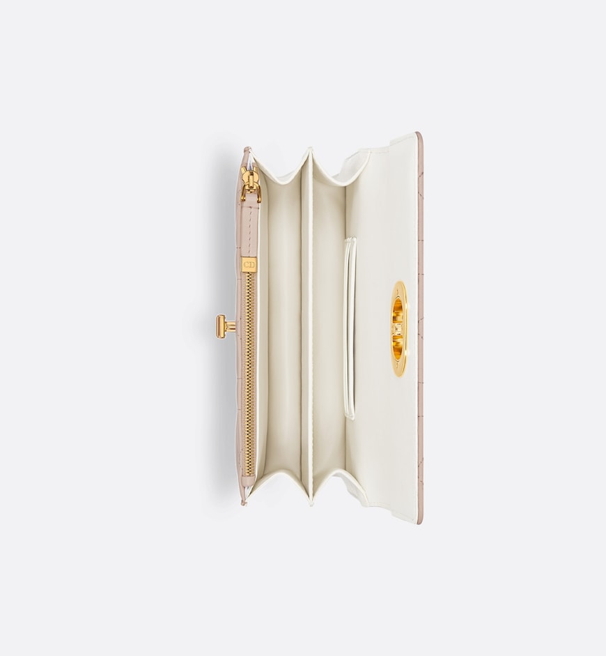 - The Miss Caro mini bag enhances the Dior Caro line with modern and timeless elegance. Crafted in two-tone trench beige lambskin, it stands out with the unique quilted effect of Macrocannage stitching and a latte interior. The flap is accented by an antique gold-finish metal CD twist clasp inspired by the seal of a Christian Dior perfume bottle. Alternating between antique gold-finish metal links and trench beige enamel links, the adjustable chain shoulder strap has a latte leather insert for added comfort when carrying the bag by hand, wearing it over the shoulder or crossbody.
