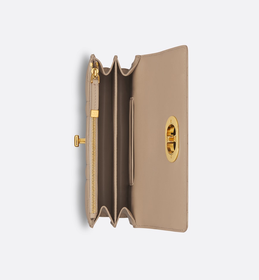 - The Miss Caro mini bag elevates the Dior Caro line with modern and timeless elegance. Crafted in biscuit lambskin, it stands out with the unique quilted effect of Macrocannage stitching, as well as a flap accented by a gold-finish metal CD twist clasp inspired by the seal of a Christian Dior perfume bottle. Alternating between gold-finish metal links and tonal enamel links that match the leather, the adjustable chain shoulder strap has a leather insert for added comfort when carrying the bag by hand, wearing it over the shoulder or crossbody.
