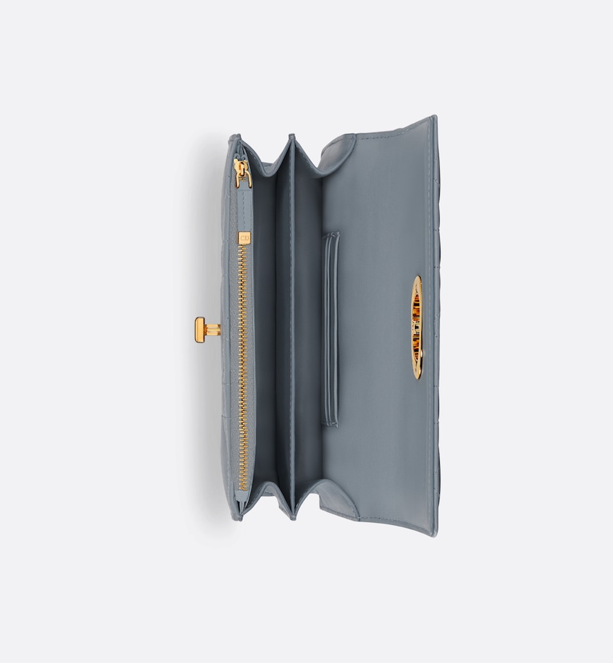 - The Miss Caro mini bag enhances the Dior Caro line with modern and timeless elegance. Crafted in cloud blue lambskin, it stands out with the unique quilted effect of Macrocannage stitching, as well as a flap accented by a gold-finish metal CD twist clasp inspired by the seal of a Christian Dior perfume bottle. Alternating between gold-finish metal links and tonal enamel links that match the leather, the adjustable chain shoulder strap has a leather insert for added comfort when carrying the bag by hand, wearing it over the shoulder or crossbody.