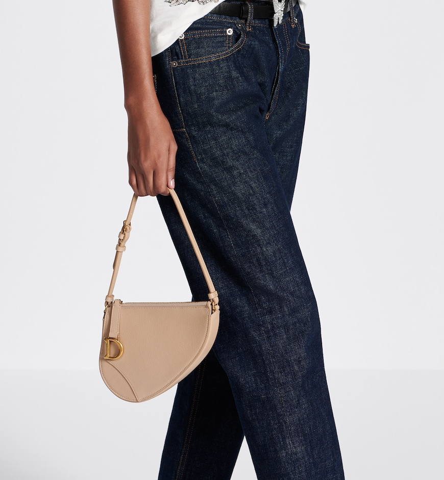 - The Saddle Rodeo pouch reimagines the namesake line’s hallmark codes, including the antique gold-finish metal D stirrup. Crafted in biscuit goatskin, it features a compact design and a compartment to hold all the essentials with one slip pocket and three card slots. Equipped with an adjustable leather strap, the pouch can be worn over the shoulder for daytime or evening.