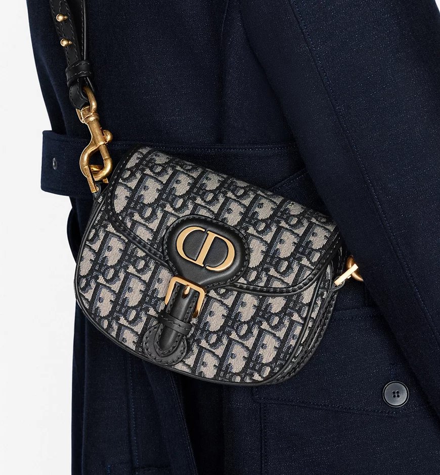 - The Dior Bobby bag is a hobo style showcasing sophisticated lines and harmonious proportions. The silhouette is crafted in blue Dior Oblique jacquard and is enhanced by antique gold-finish metal hardware. Featuring a removable and adjustable sliding shoulder strap with a military-inspired buckle, the small Dior Bobby bag can be carried by hand, worn over the shoulder or crossbody.