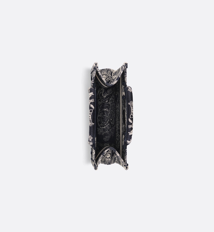 • Introduced by Maria Grazia Chiuri, Creative Director of Christian Dior, the Dior Book Tote has become a staple of the Dior aesthetic. Designed to hold all the daily essentials, the style is fully embroidered with the blue and white Toile de Jouy Reverse motif, a variation of the House’s hallmark pattern with a play on reversed colors. Adorned with the Christian Dior Paris signature on the front, the small tote exemplifies the House’s signature savoir-faire and may be carried by hand.