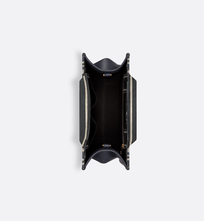 - Maria Grazia Chiuri’s hallmark Dior Book Tote is offered in an elegant variation. The refined style showcases an iconic blue Dior Oblique embroidery and calfskin. Designed to keep all daily essentials organized, the interior is equipped with a zip pocket and slip pockets. Featuring an embroidered adjustable, removable strap, the practical small tote exemplifies Dior’s savoir-faire and can be carried by hand or worn over the shoulder.