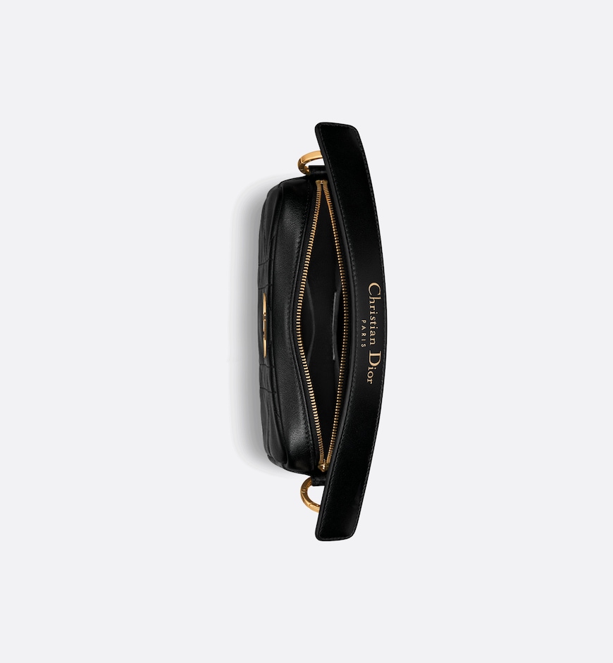 - New for the Summer 2024 season, the Dior Caro Top Handle Camera bag is a sophisticated and practical design. Crafted in black calfskin, the small model is elevated by the originality of the Macrocannage stitching’s quilted effect. The bag features a zip closure and an antique gold-tone metal CD signature. The detachable top handle with Christian Dior Paris signature is completed by the removable chain shoulder strap with CD signature links, allowing it to be carried by hand, on the shoulder, or crossbody, for both day and evening wear.