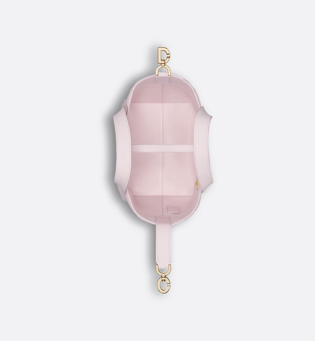 - The Dior Toujours vertical tote bag is distinguished by a modern and practical design. Crafted in pale pink calfskin with Macrocannage topstitching, it has a spacious interior compartment to accommodate all the essentials. Its thin leather strap closure keeps items secure, while the D of the CD Lock clasp twists to adjust the sides and enhance the bag’s silhouette. The leather top handles are completed by a removable leather strap, allowing the small bag to be carried by hand, worn over the shoulder or crossbody.