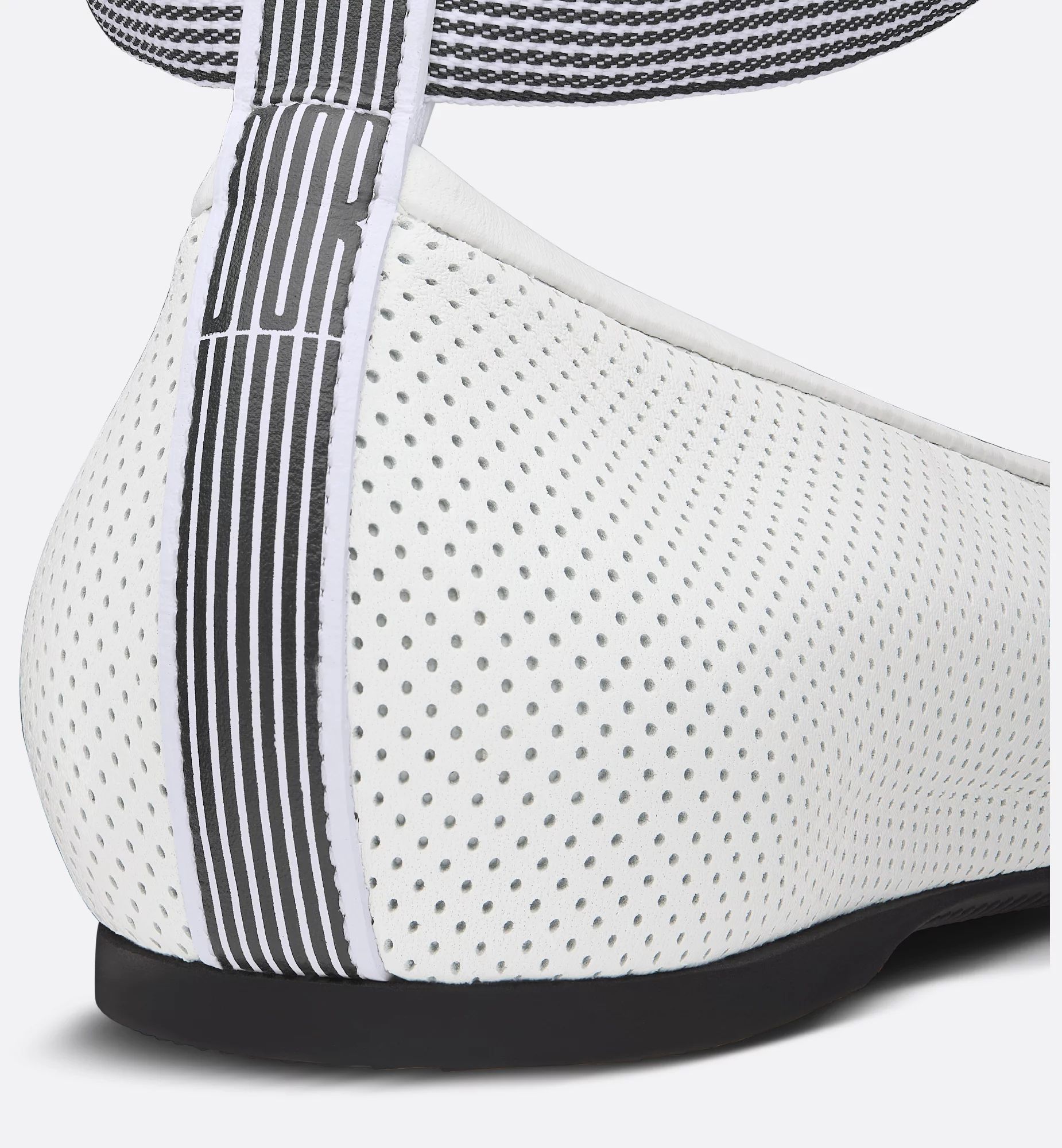 New for Summer 2025, the D-Journey lace-up ballet flat is elegantly relaxed. The white perforated supple lambskin upper is embellished with a removable jacquard lace accenting the ankle and highlighting the two-tone Dior Graphique motif, drawn from House archives and created by Marc Bohan in 1971. Featuring a comfortable quilted leather insole, the ballet flat will lend the finishing touch to any look this season and can be paired with other Dior Graphique creations.