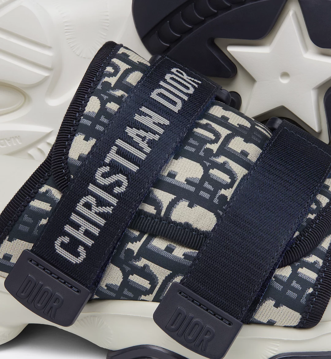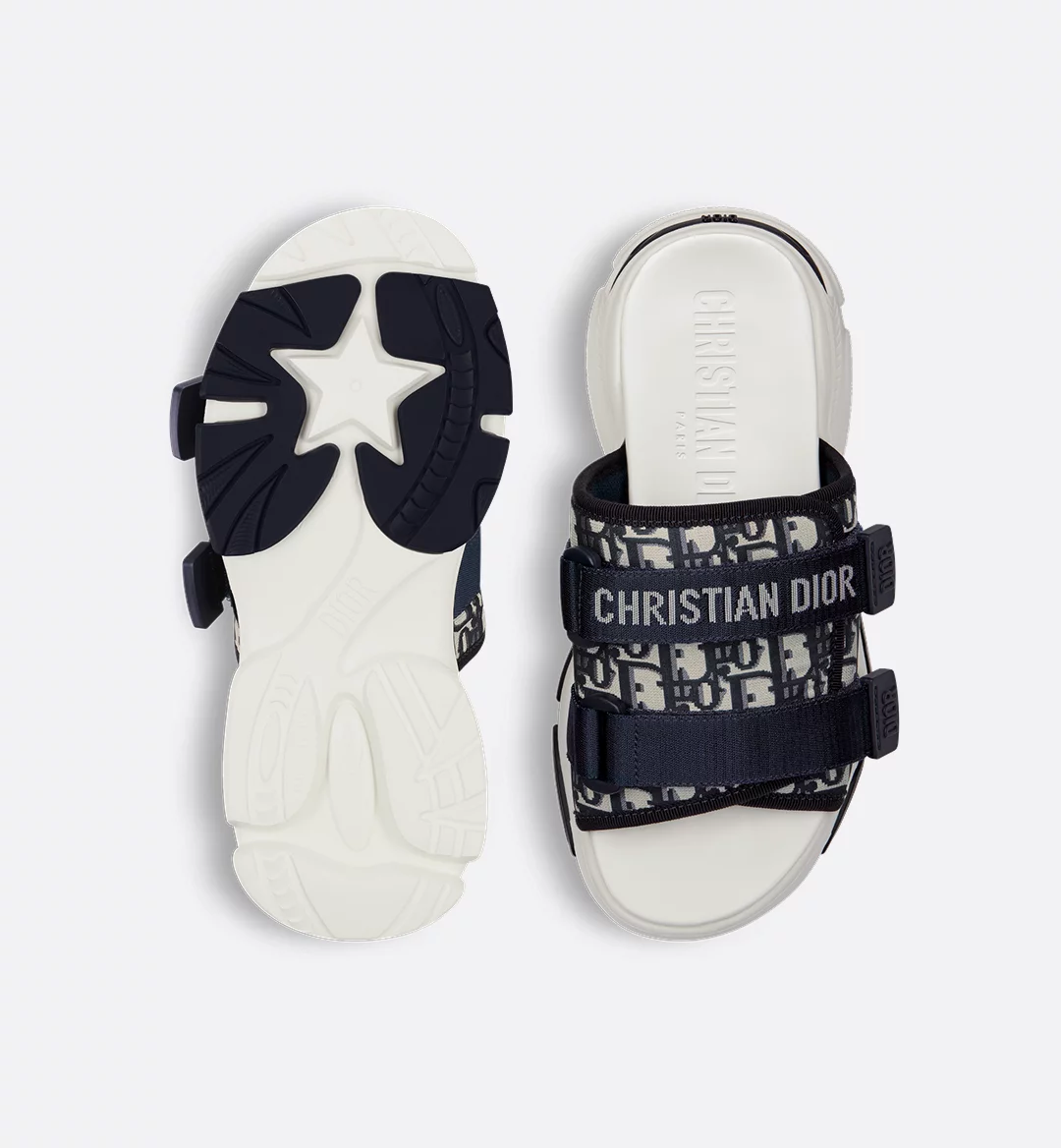 • Supple and lightweight two-tone textured EVA sole with star, Christian Dior’s lucky symbol