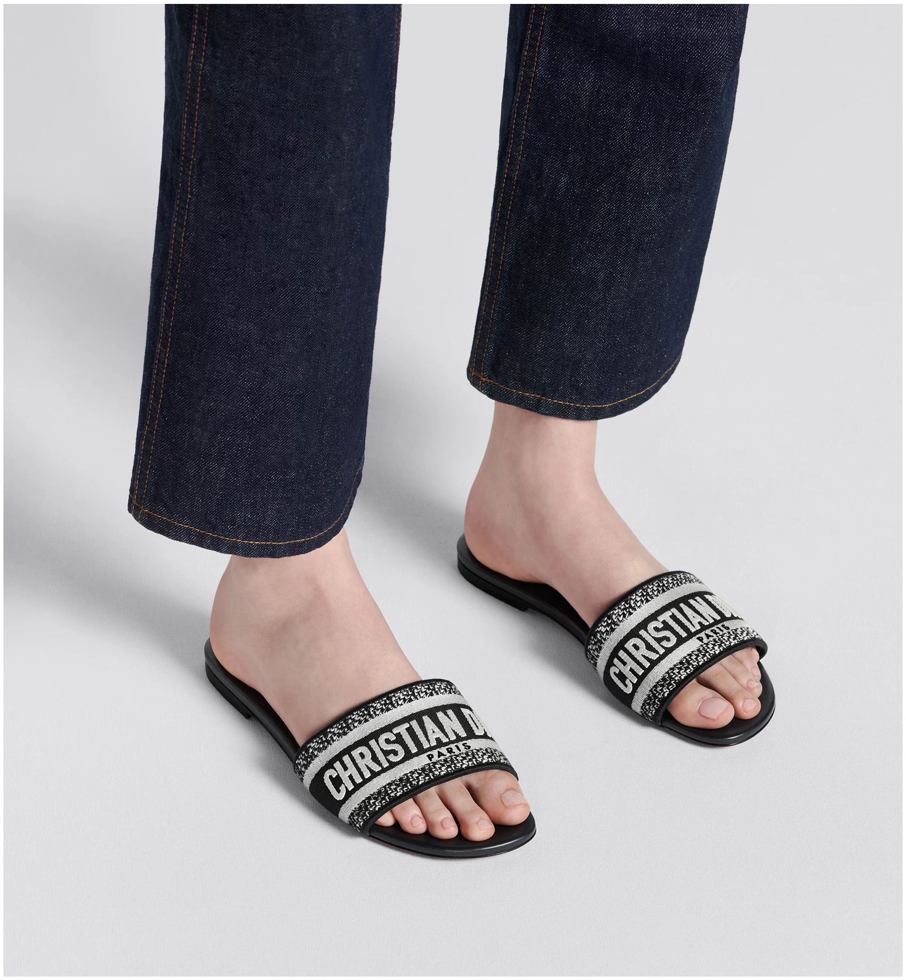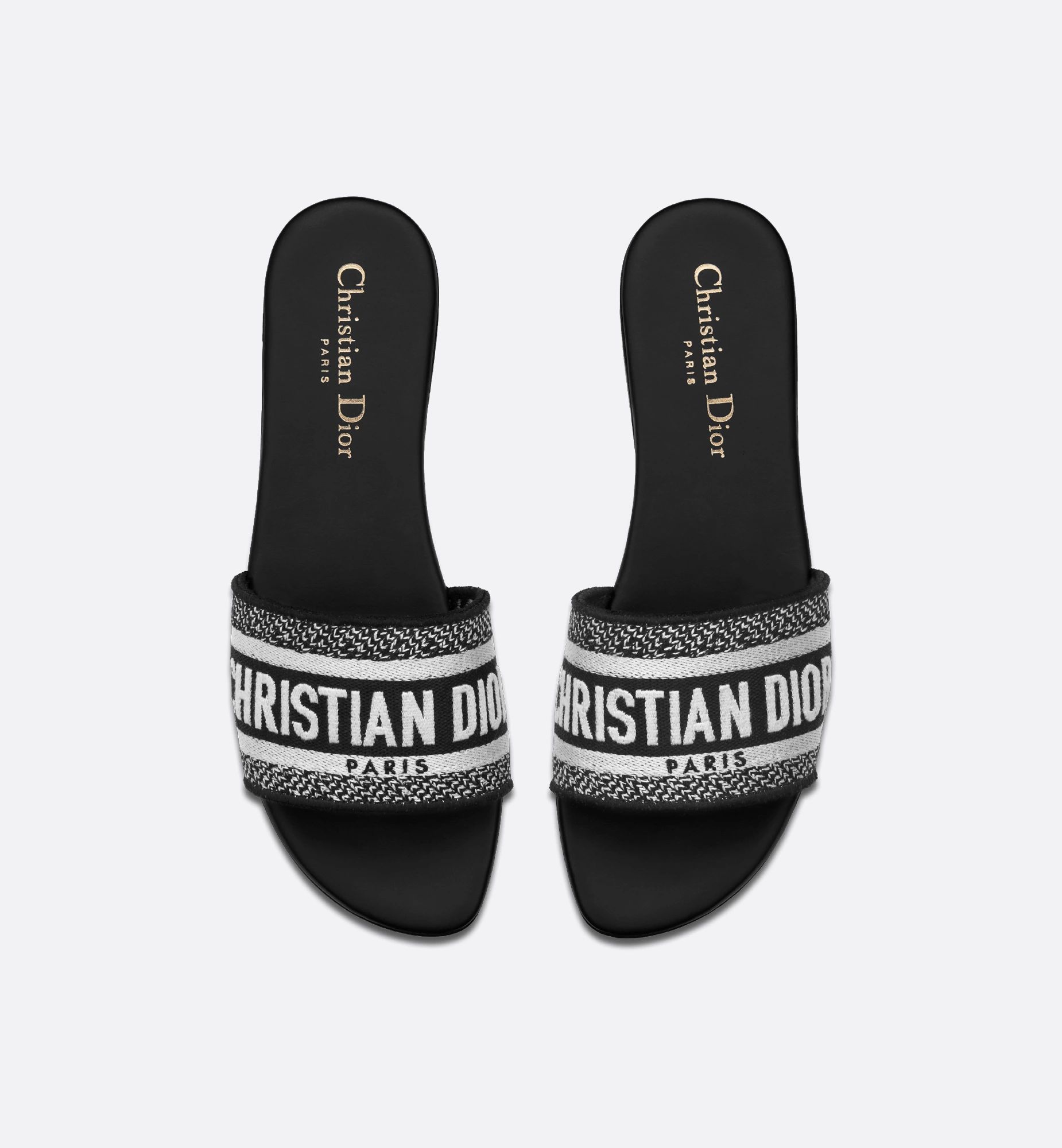 The Dway slide has a timeless and emblematic silhouette. The slide’s upper features a black embroidered Christian Dior Paris signature for an unmistakable touch. The streamlined design slips on easily and offers effortless style.