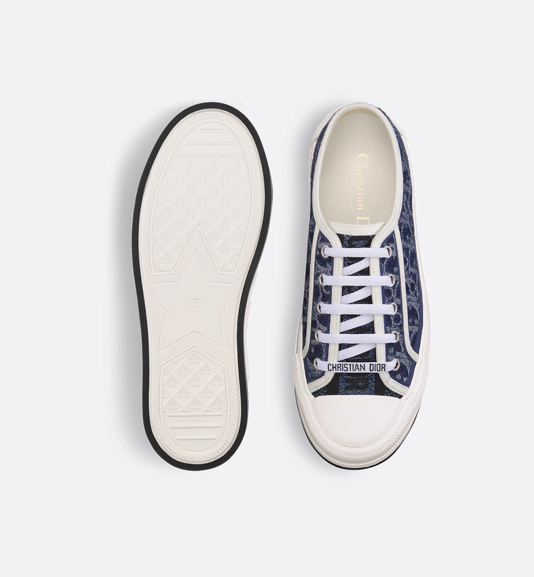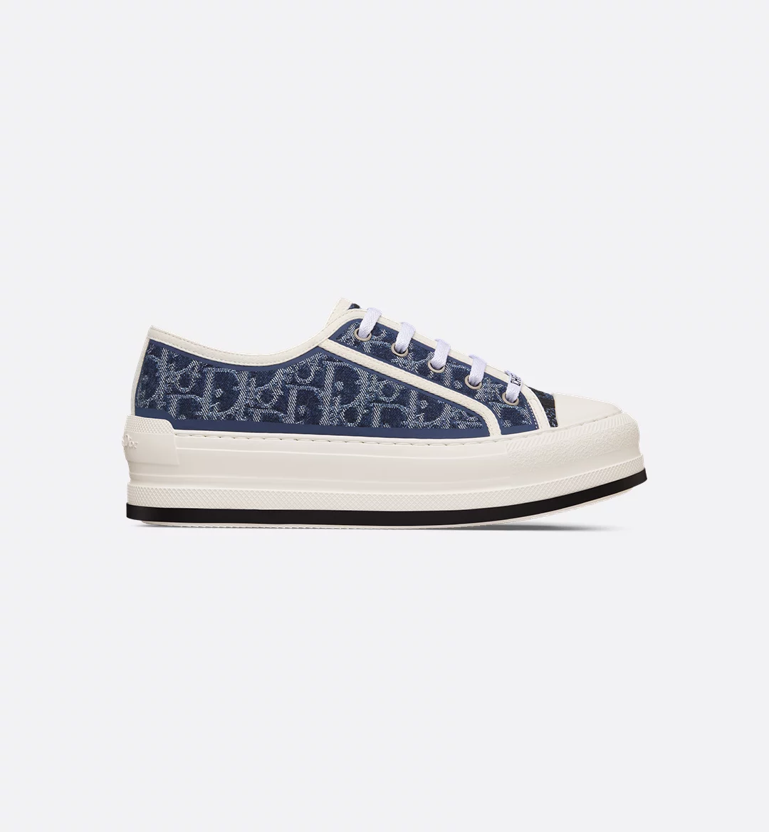 The Walk’n’Dior platform sneaker elevates the line with a modern creation. The embroidered cotton denim upper offers a new take on the iconic House motif with the contemporary appeal of an irregular stonewashed effect. The style is completed by a comfortable and ultralightweight thick sole, tongue and Christian Dior laces. The sneaker will add a fresh touch to any laid-back look and can be coordinated with other Denim Dior Oblique creations from the collection.