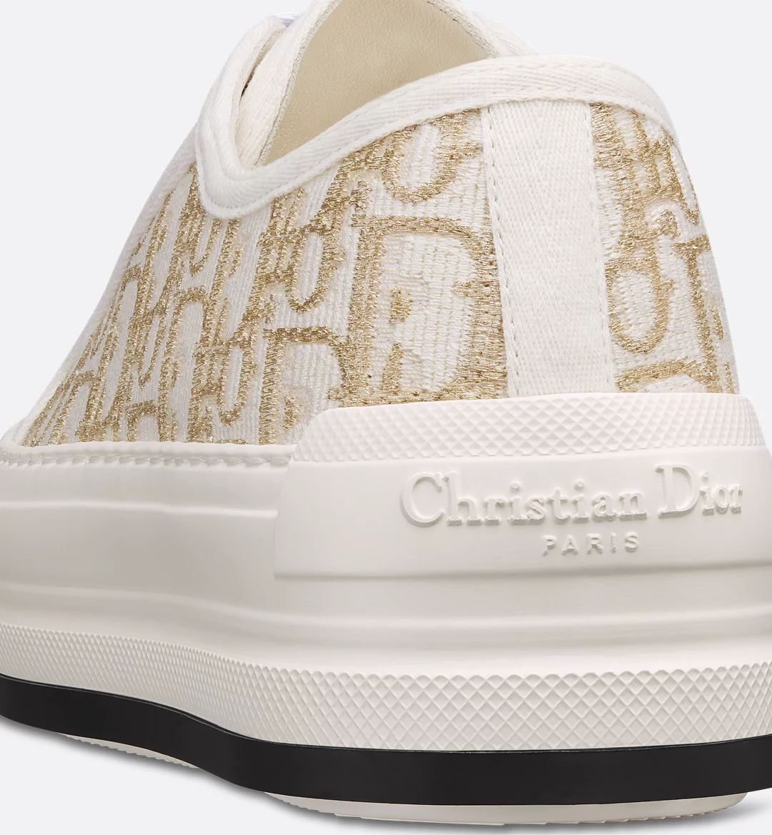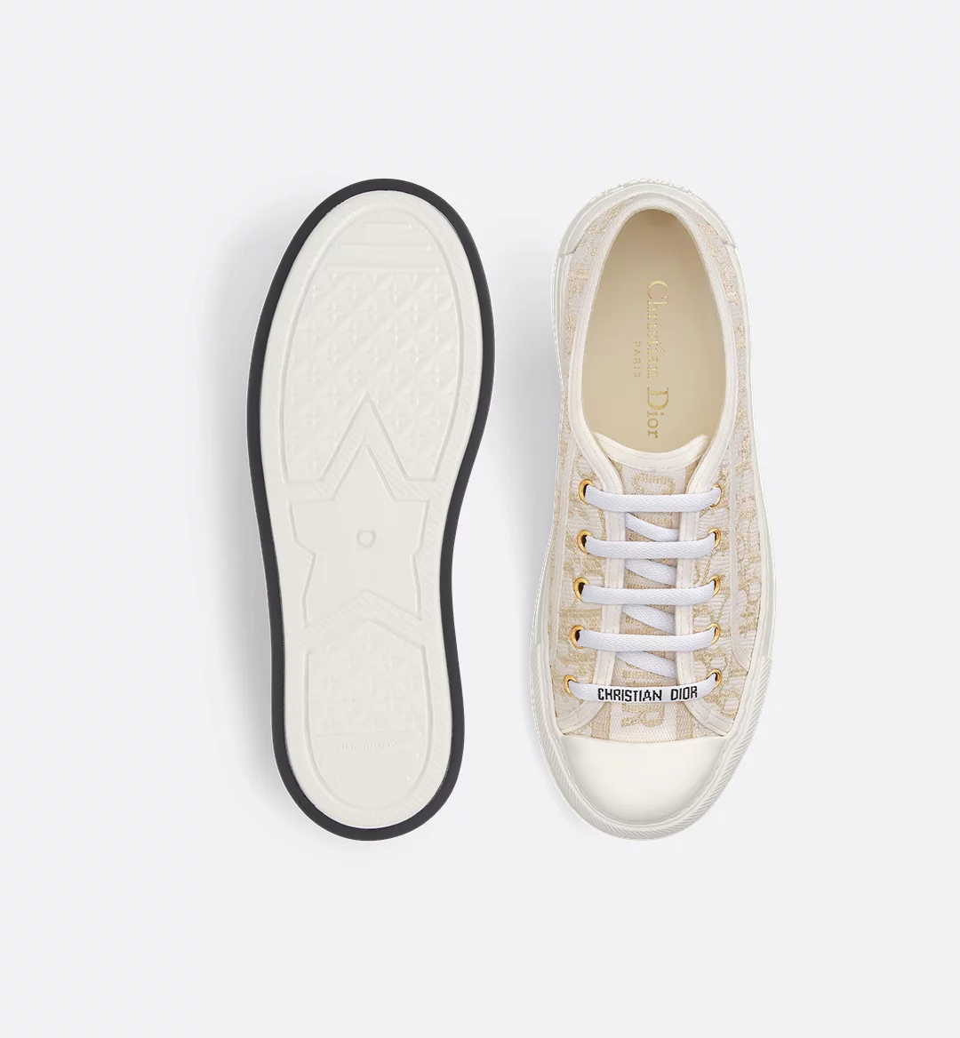 The Walk’n’Dior platform sneaker enhances the line with a modern creation. The Dior Oblique embroidered cotton upper is embellished with metallic gold-tone thread and features a comfortable and ultralightweight thick sole, tongue and Christian Dior Paris laces. The sneaker will add a contemporary touch to any laid-back look.