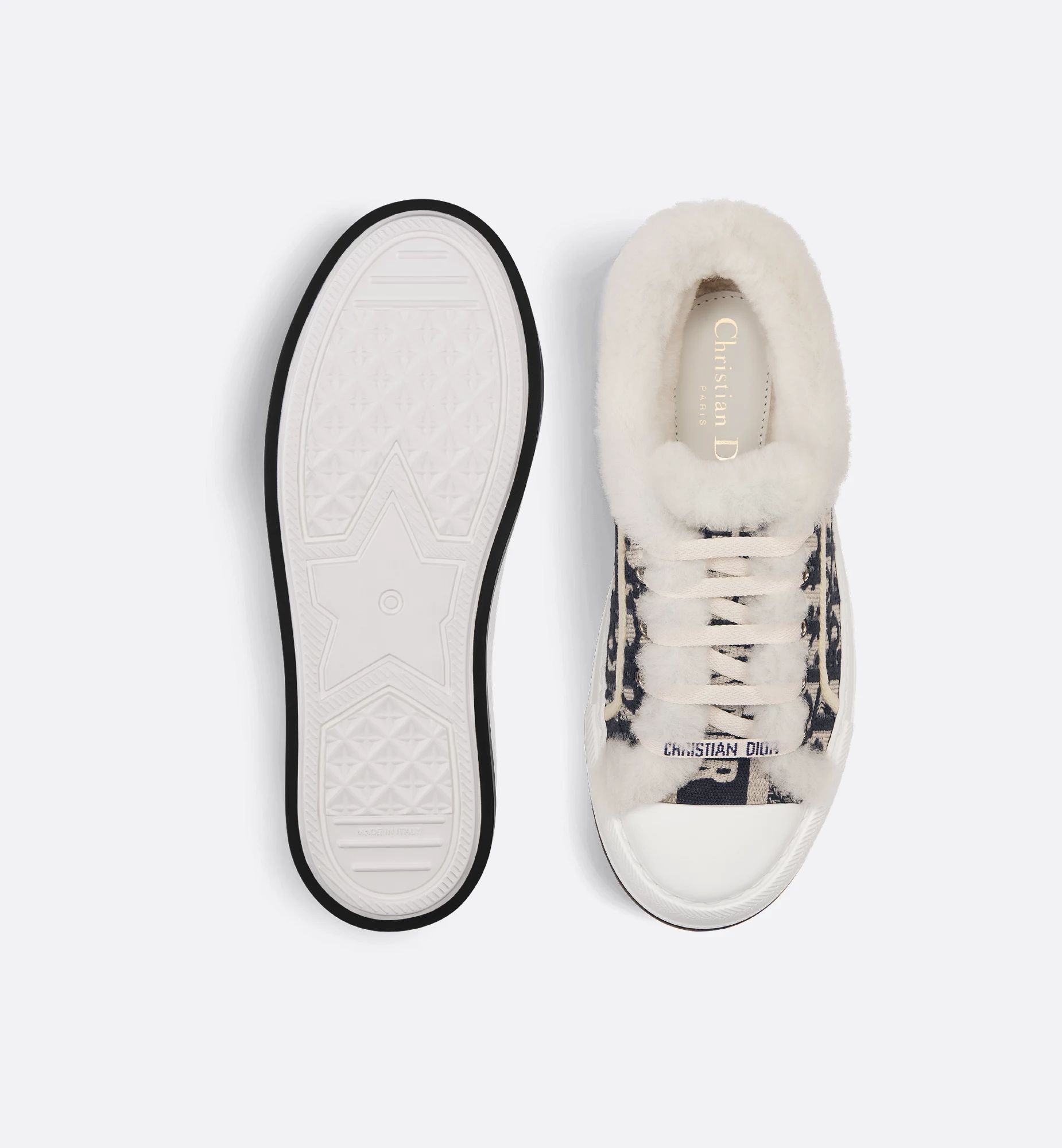 The Walk’n’Dior platform sneaker enhances the line with a modern creation. The deep blue Dior Oblique embroidered cotton upper is enhanced by white shearling lining. The style features a comfortable and ultralightweight thick sole, tongue and Christian Dior Paris laces. The sneaker will add a contemporary touch to any laid-back look.