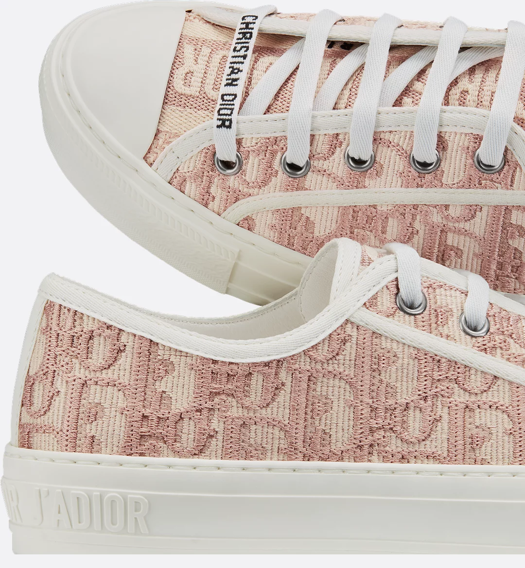 The Walk’n’Dior sneaker is available in nude Dior Oblique embroidered cotton. Its relaxed design features signatures on the tongue, rubber sole and laces for a timeless look.