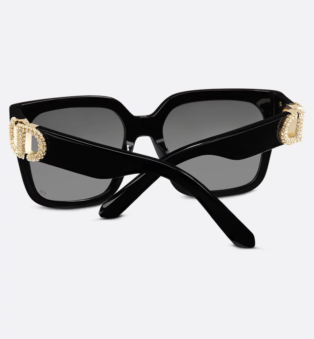 The 30Montaigne S11I sunglasses present a square shape with contemporary appeal. The black acetate frame is enhanced by a CD hinge in gold-finish metal with white Swarovski® crystals, an homage to the hallmark clasp of the namesake bag. Completed by gray gradient lenses, the elegant style will lend a couture touch to any look.