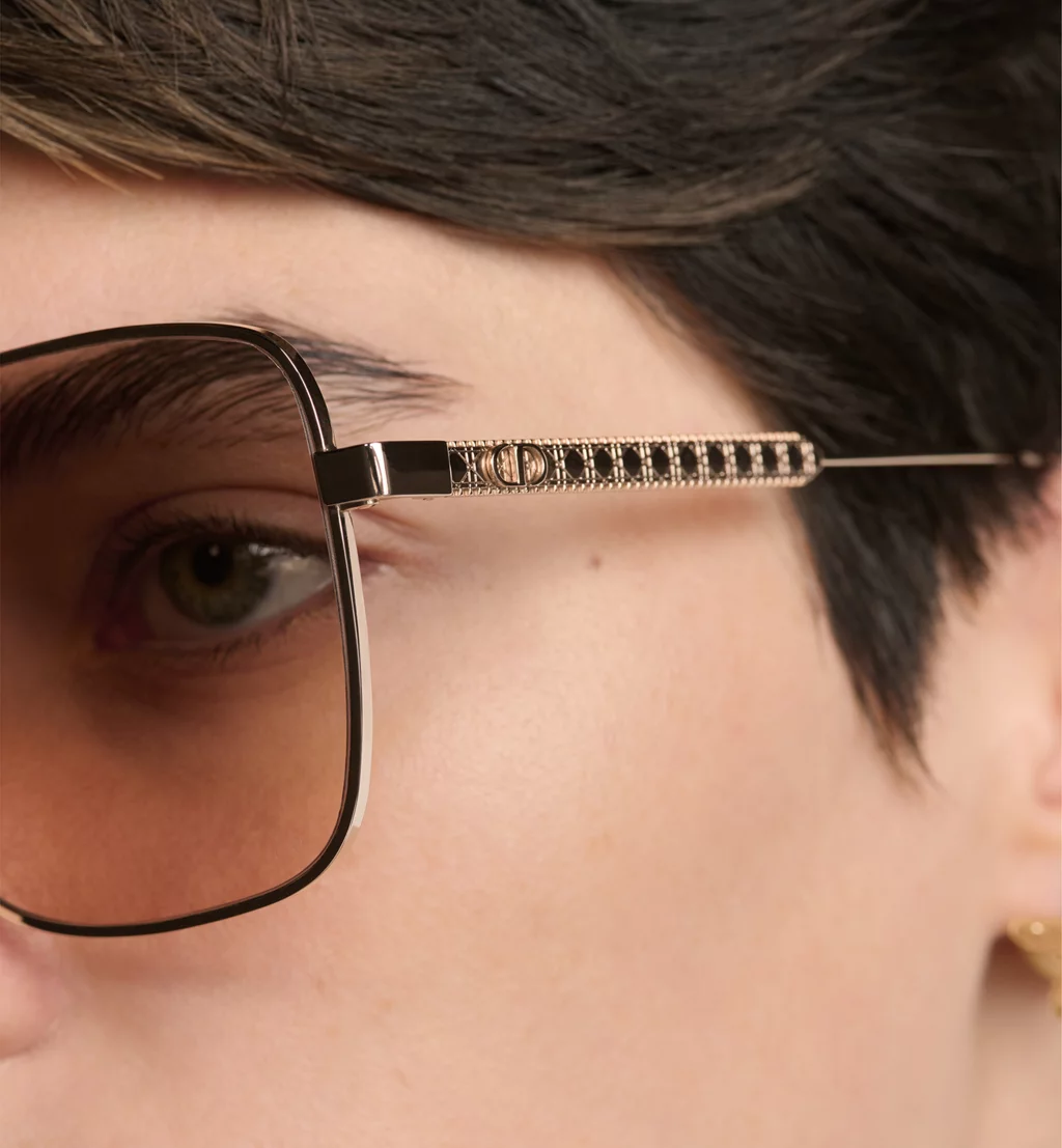 The DiorCannage S1U sunglasses are an elegant style adorned with hallmark details. The gold-finish metal square frame stands out with delicate engraving on the temples showcasing the Cannage motif and CD signature. Completed by gradient bronze-to-nude lenses, the sunglasses will lend a modern and refined touch to any attire.