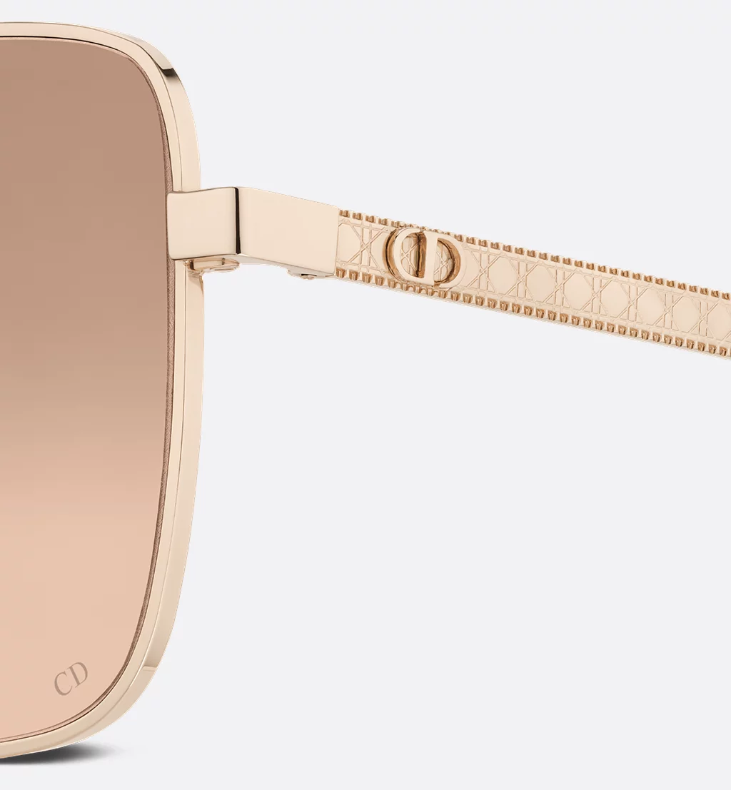 The DiorCannage S1U sunglasses are an elegant style adorned with hallmark details. The gold-finish metal square frame stands out with delicate engraving on the temples showcasing the Cannage motif and CD signature. Completed by gradient bronze-to-nude lenses, the sunglasses will lend a modern and refined touch to any attire.Gold-finish metal frame
